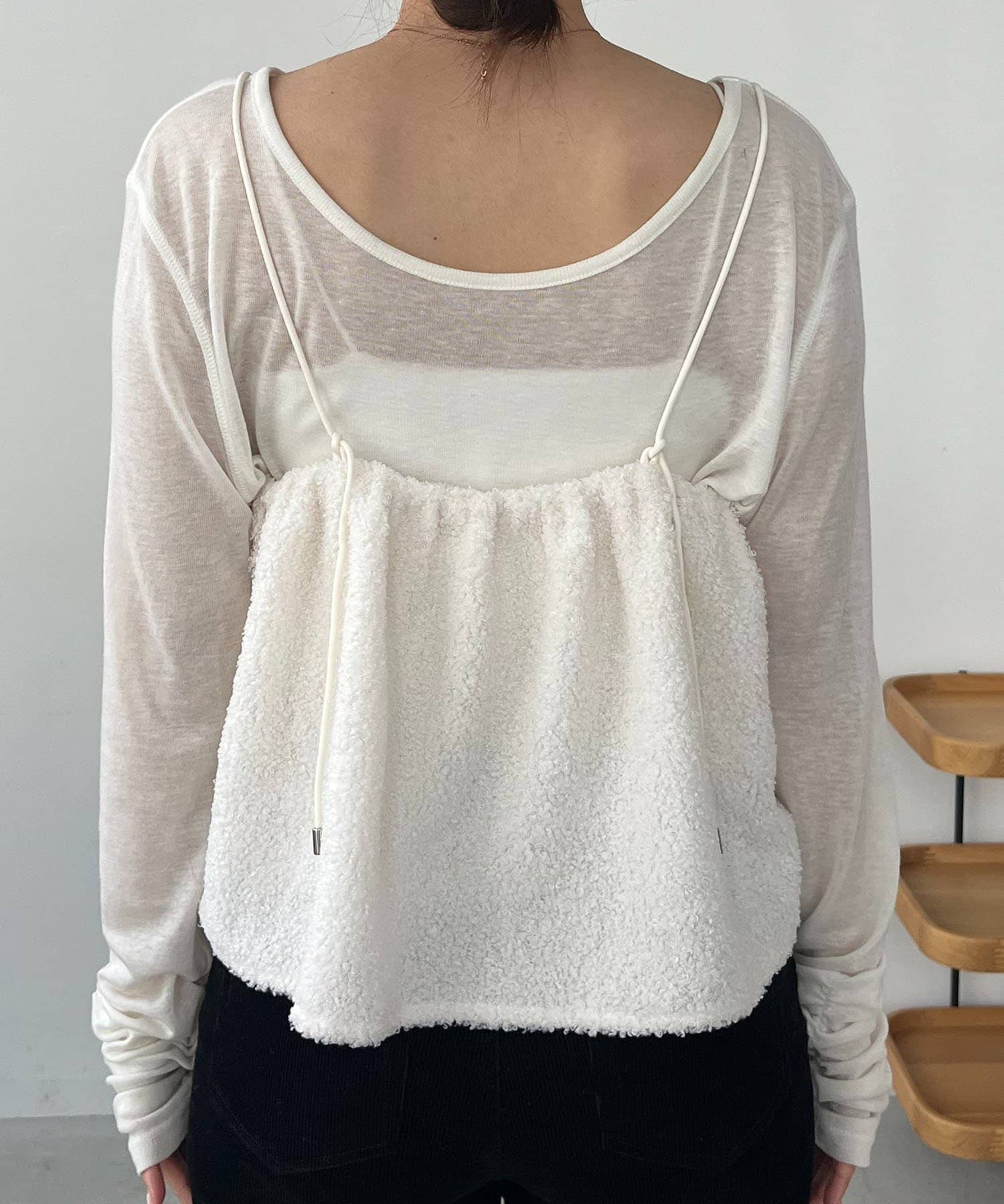 ボア素材で冬らしく暖かい触り心地のフレアキャミ🧶