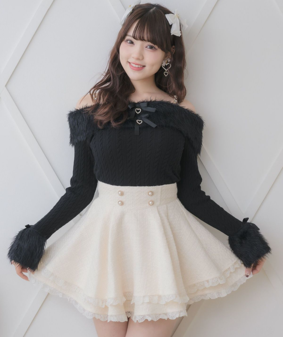 サイドレースアップショートジャケットとのスタイリングがおすすめ♡大人モードなフレアスカートがお目見えです。ブラックとピンクはラメ入り素材で綺麗めに、新鮮なネイビーは季節感のあるチェック柄を取り入れ洗練された雰囲気をプラスしてくれます。