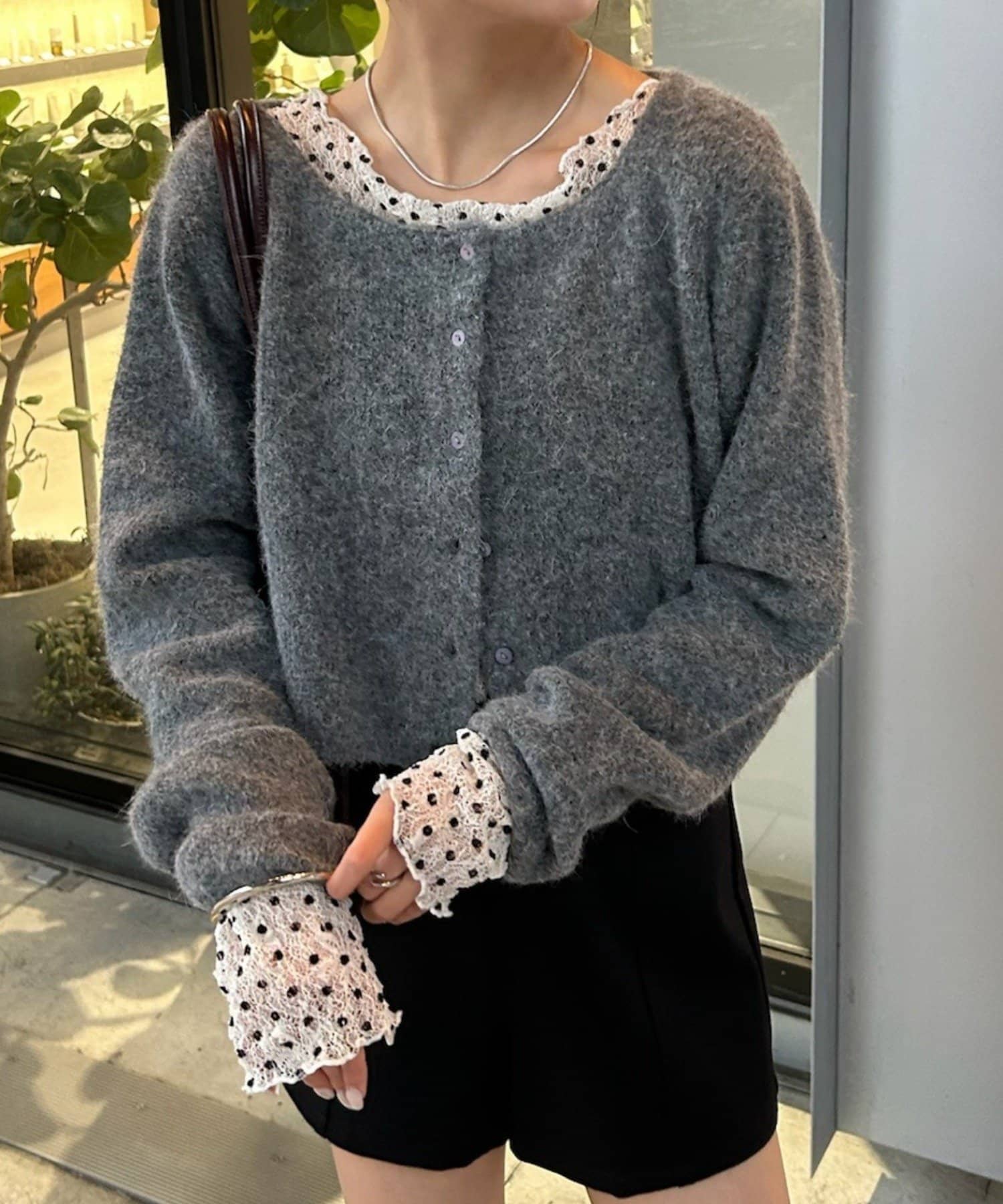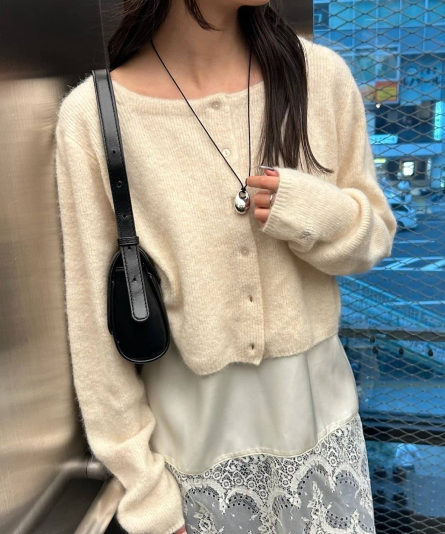 クロップド丈なので、インナーに長めのレーストップスなどをレイヤードしてこなれ感のあるスタイルに!