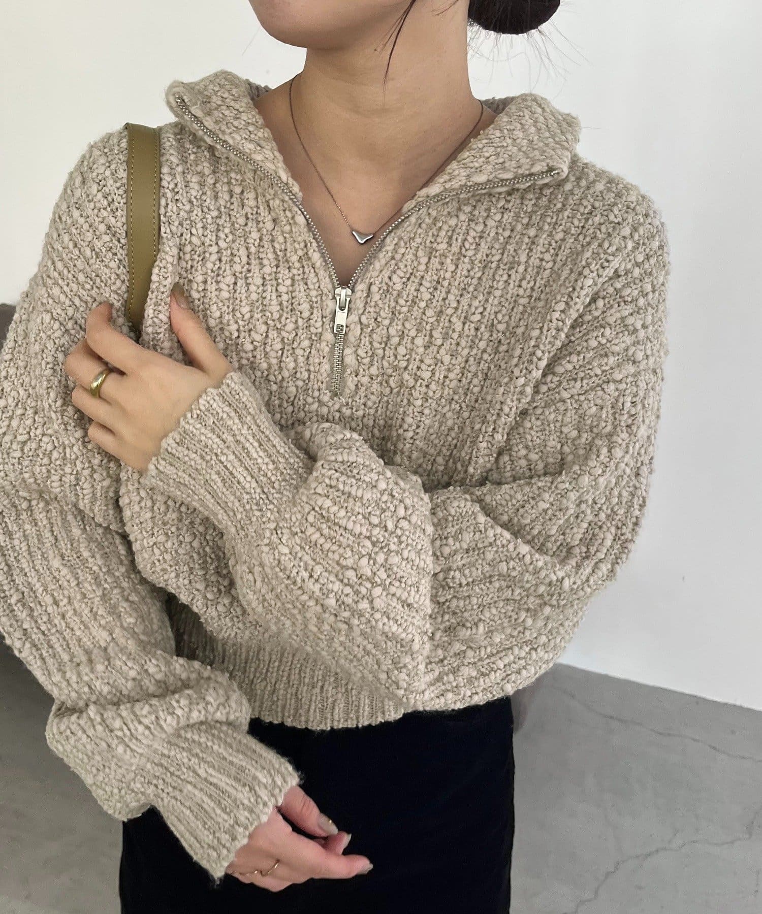 ハーフジップになっているので開けてすっきり、閉めて暖かく着ていただけます✔️