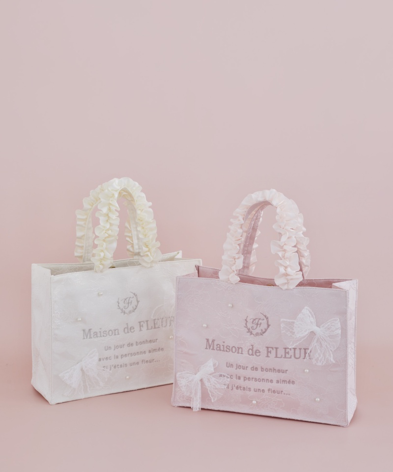 ♦品名:レースリボンフリルハンドルスクエアトートMバッグ