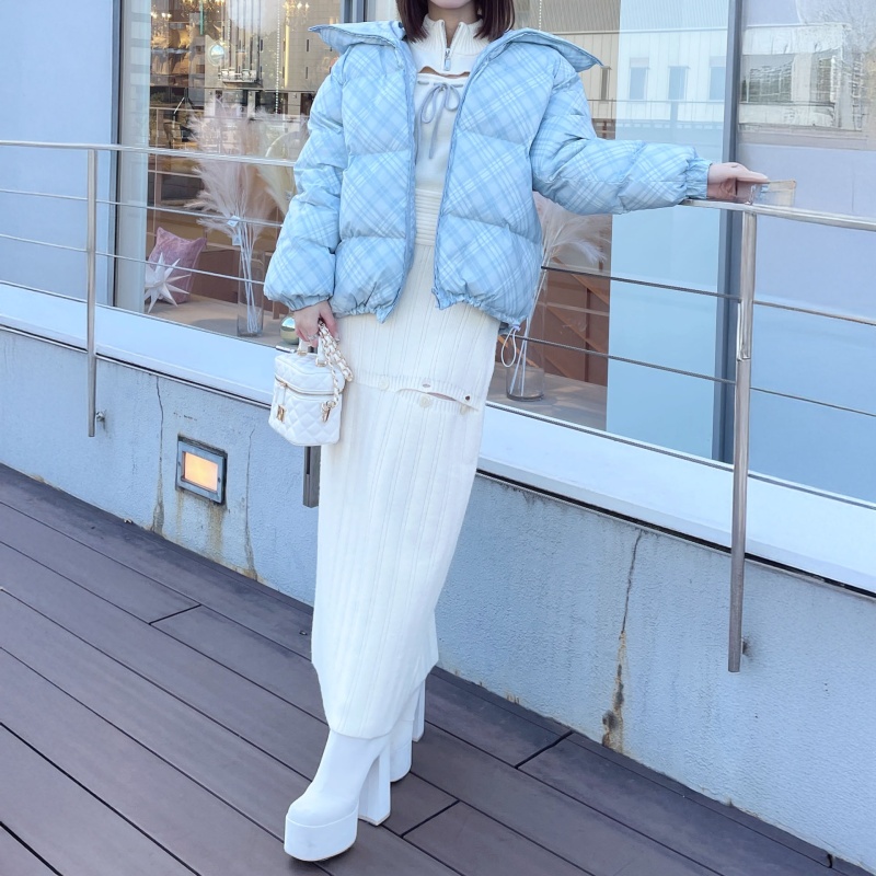 大きなリボンがとびきりキュートな、冬のヒロインになれるチェックダウンジャケット♡🎀