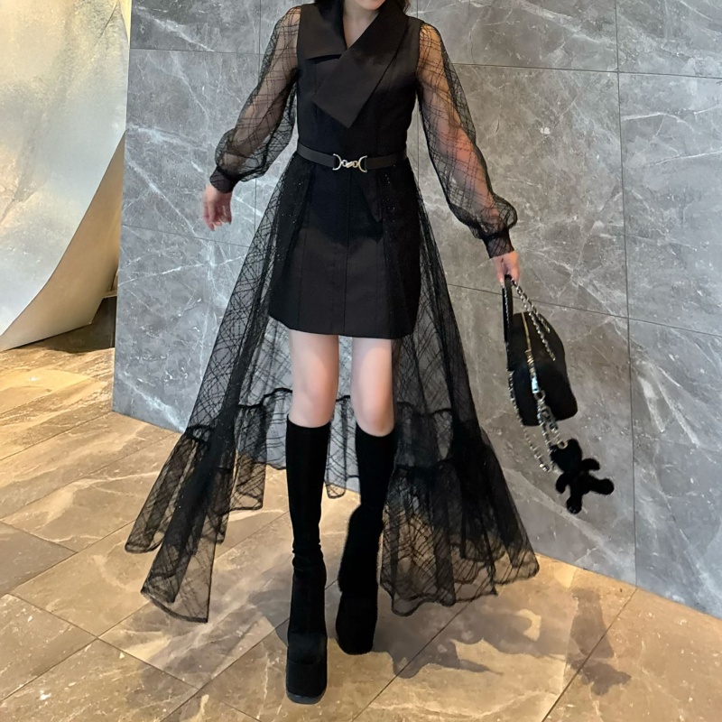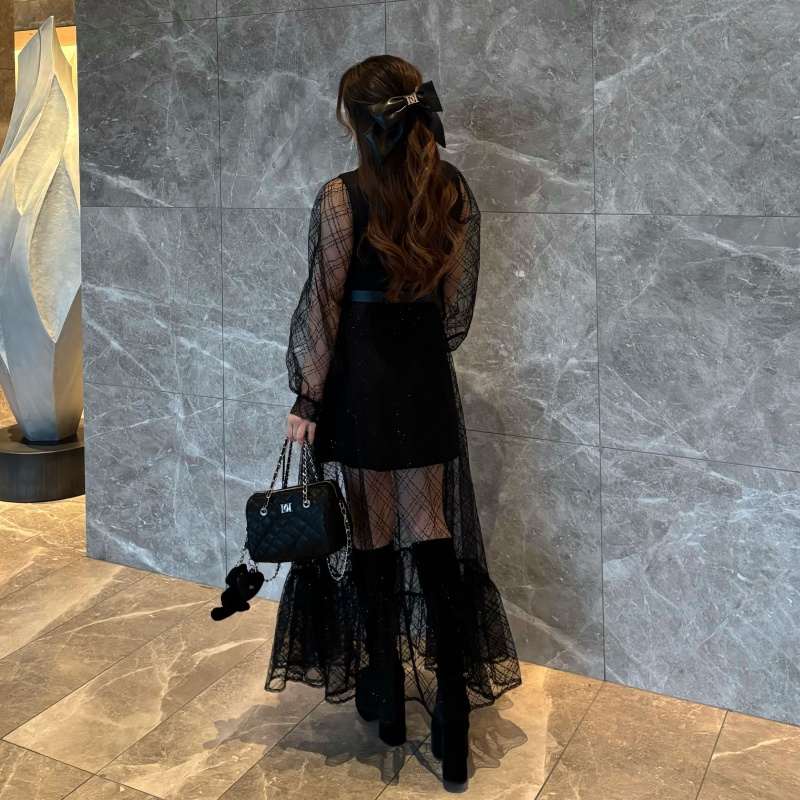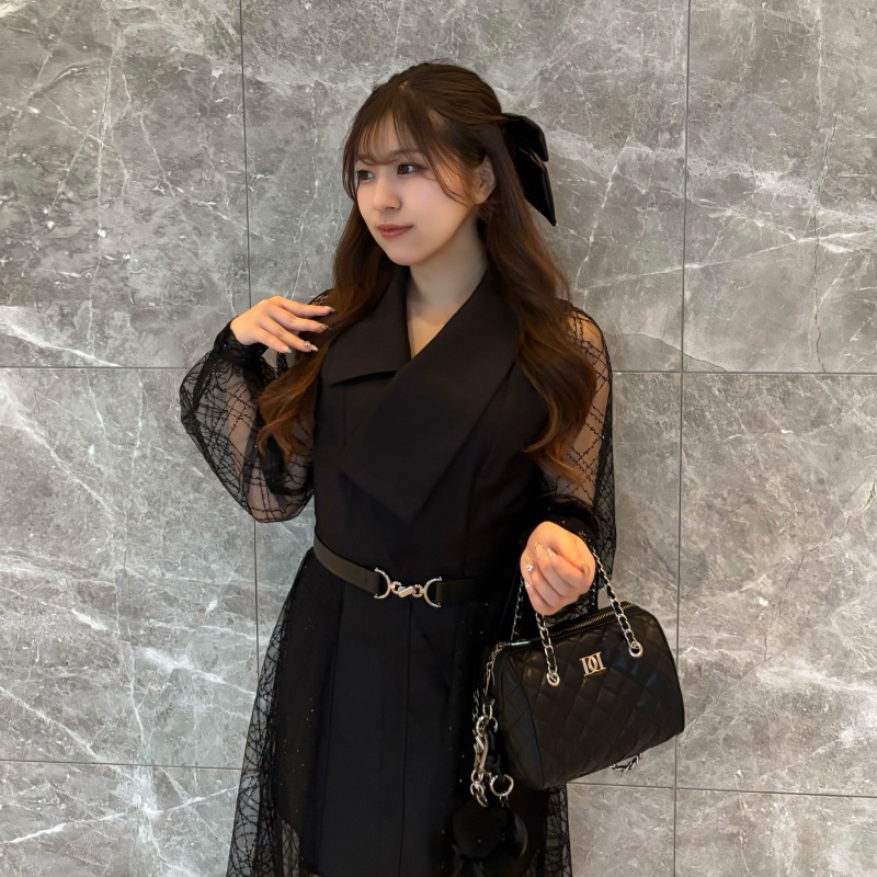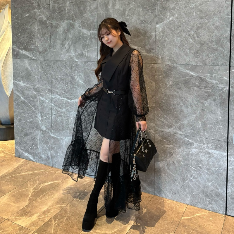 透け感×オリジナルバックルベルトで特別感たっぷり、ホリデーシーンに映える1着です🪄
