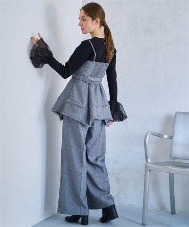 共地のツイードビスチェ(品番:5561111)と合わせてセットアップ風にも着ることができます。