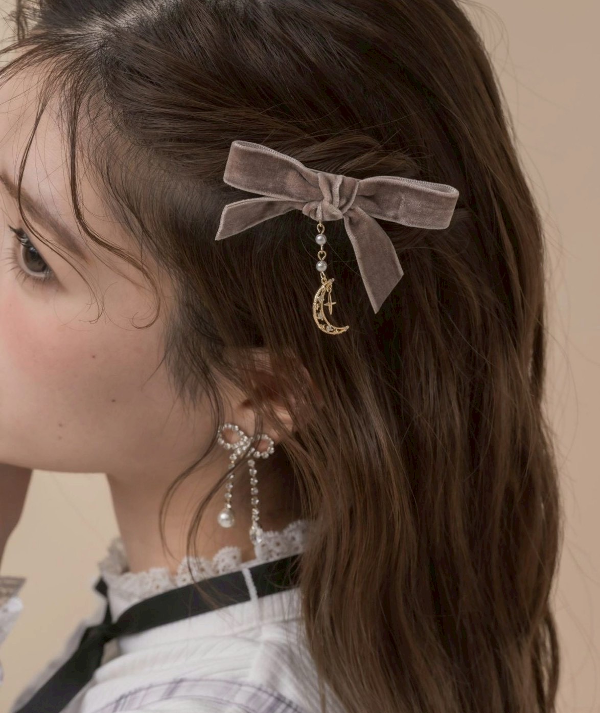 上品で可愛らしい印象のベロアリボンクリップセット。シーズンライクなベロア素材が、コーディネートにさりげない季節感を添えてくれます。ファンシーなムーンチェーンがアクセントになり、ヘアスタイルを可愛く仕上げるアイテムです♪