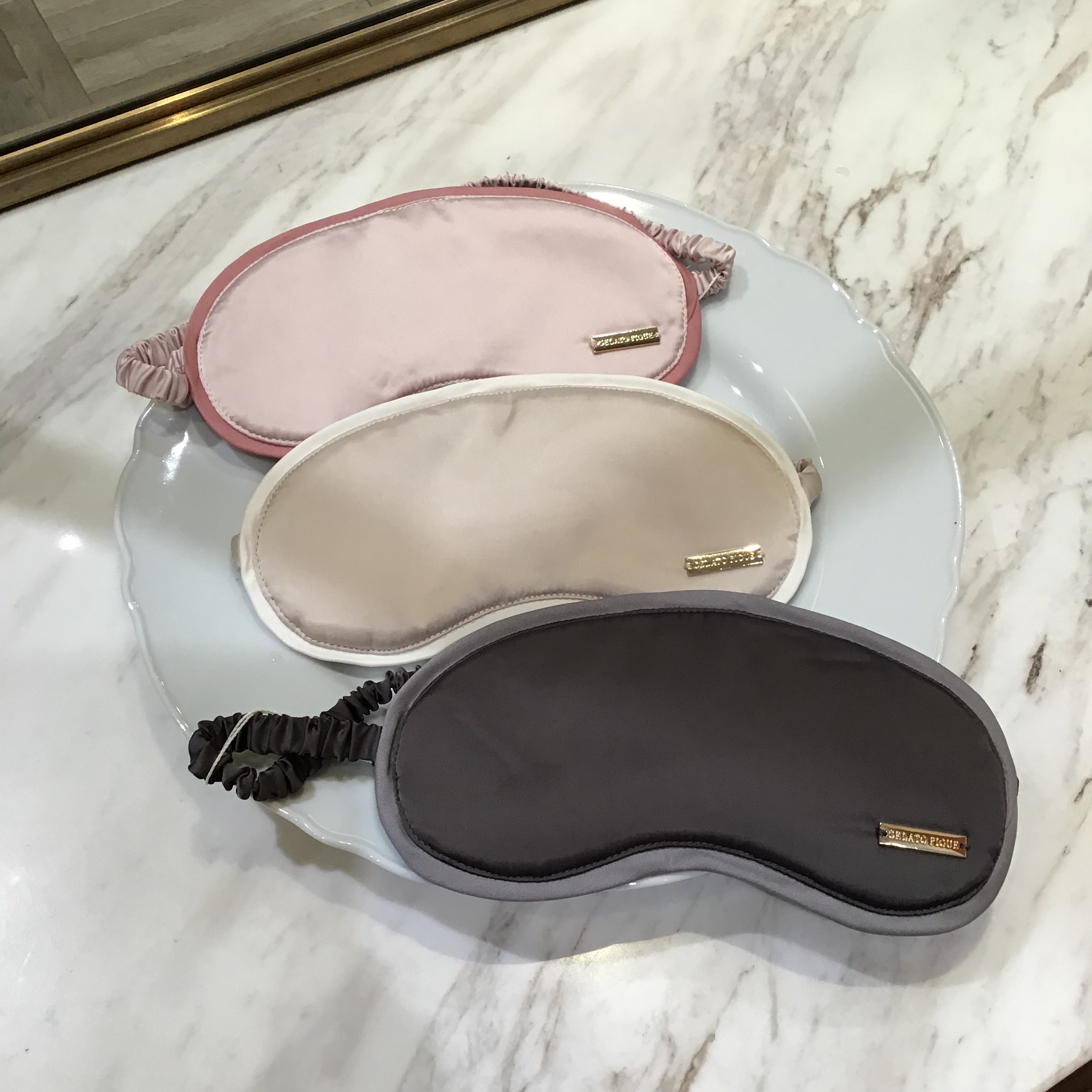 柔らかく適度な厚みに仕上げた、上品な印象のパイピング入りアイマスク。ロゴ入りのゴールドプレートもあしらい、おうちだけでなく長時間の移動や旅先でも使いやすいデザインです🎶