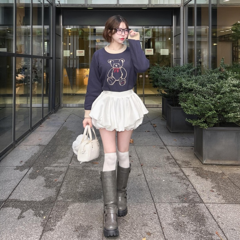 配色デザインが全体を引き締め、ふんわり肉厚ニットでラフなのに女の子っぽさを演出します🧸🎀