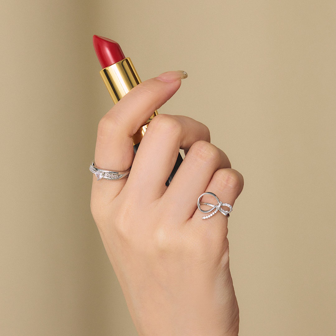 アシンメトリーなリボンがポイントのピンキーリング💍