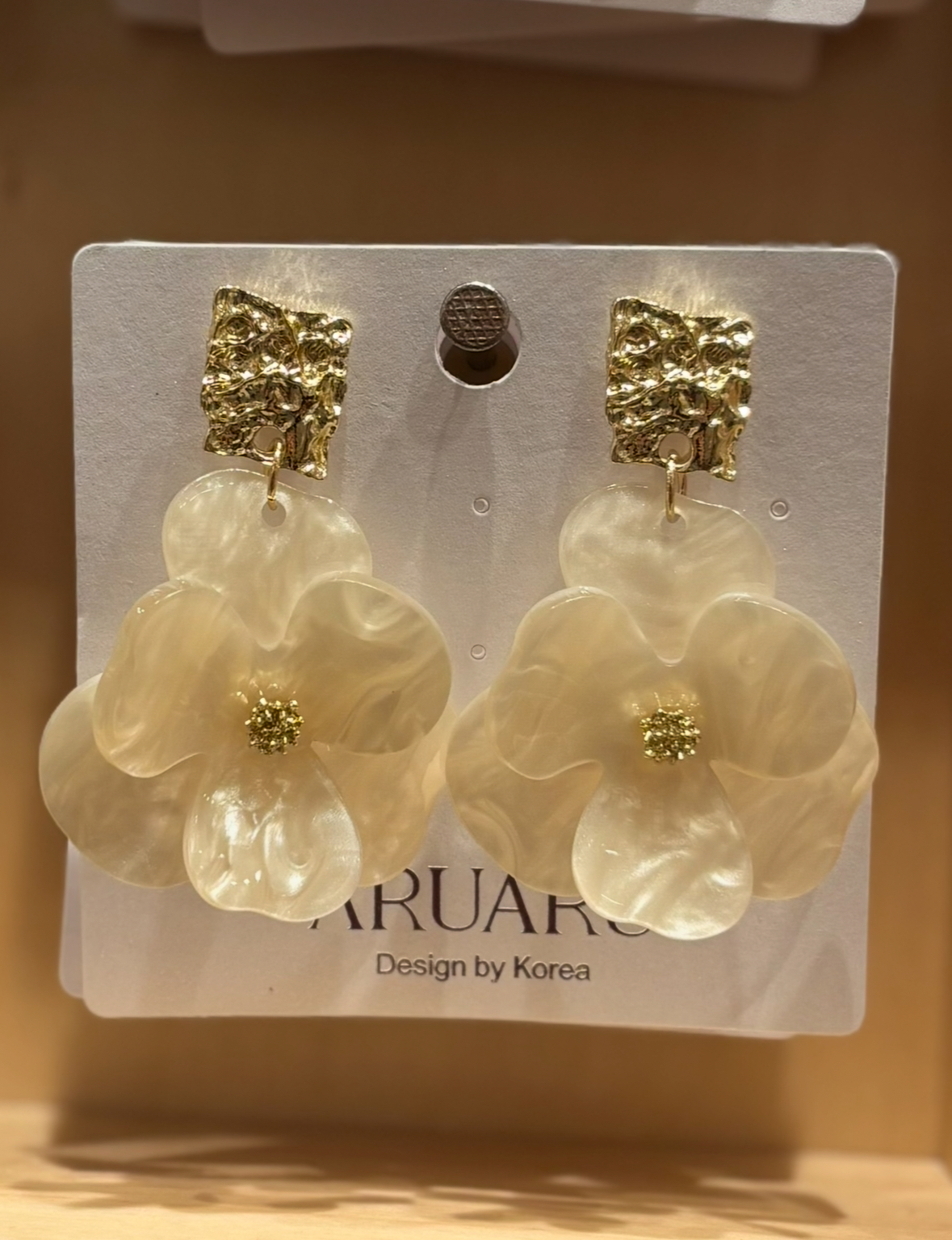 透明感のある花びらが重なり合った、上品で華やかなフラワーピアス🌼♡