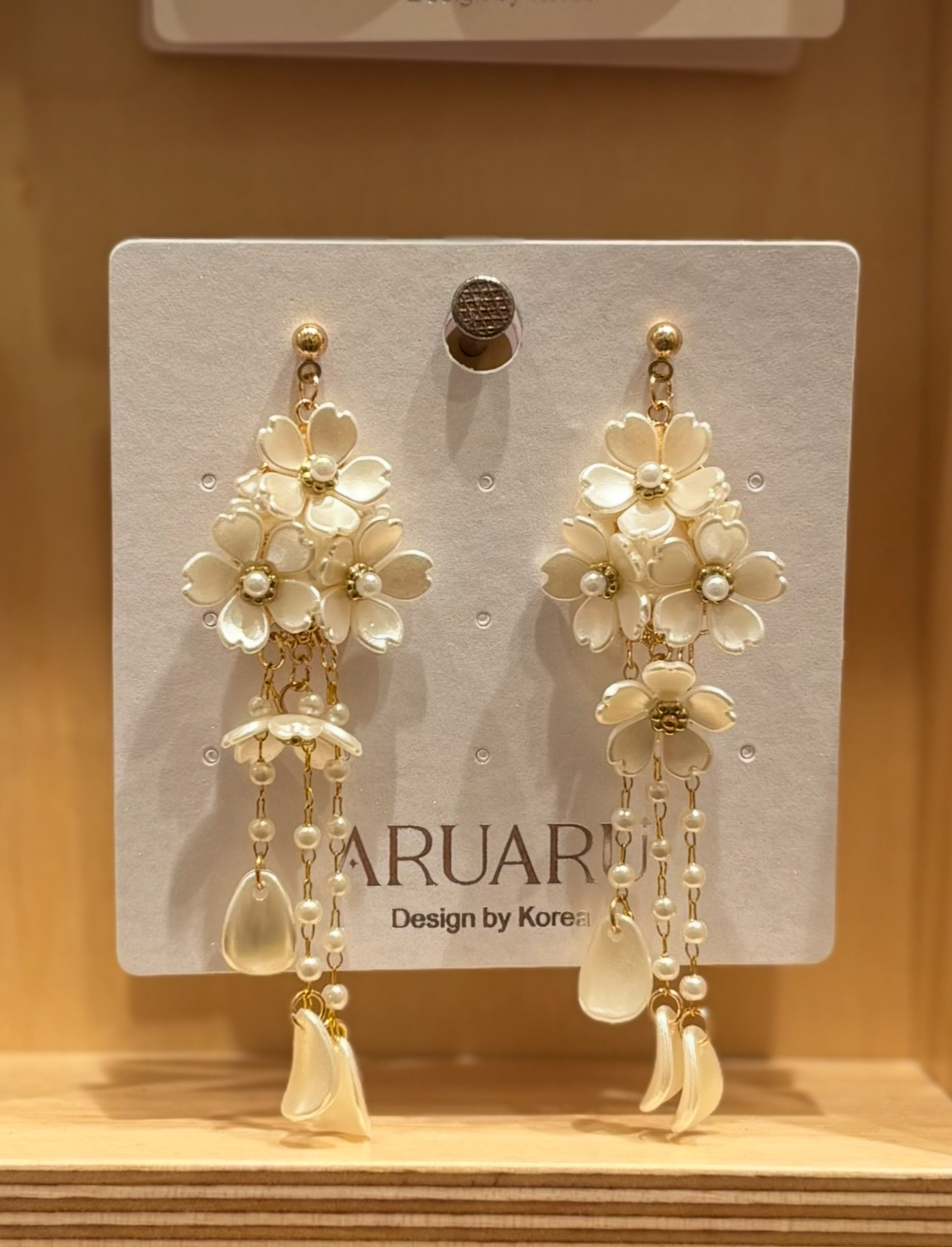 繊細なフラワーモチーフに、揺れるパールが上品なロングピアス🌼💎