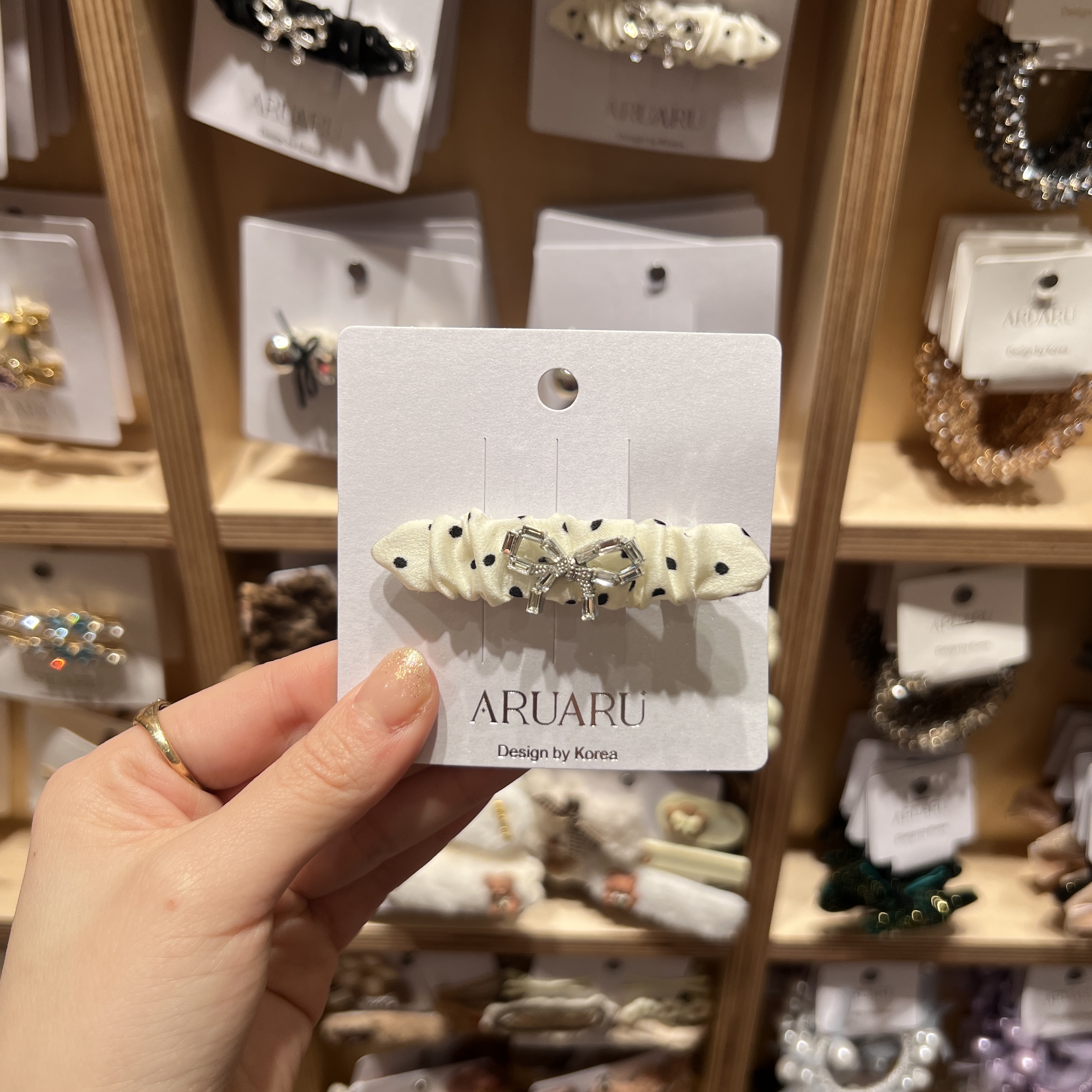 上品なリボンモチーフが目を引く、ドット柄デザインのヘアクリップ🎀
