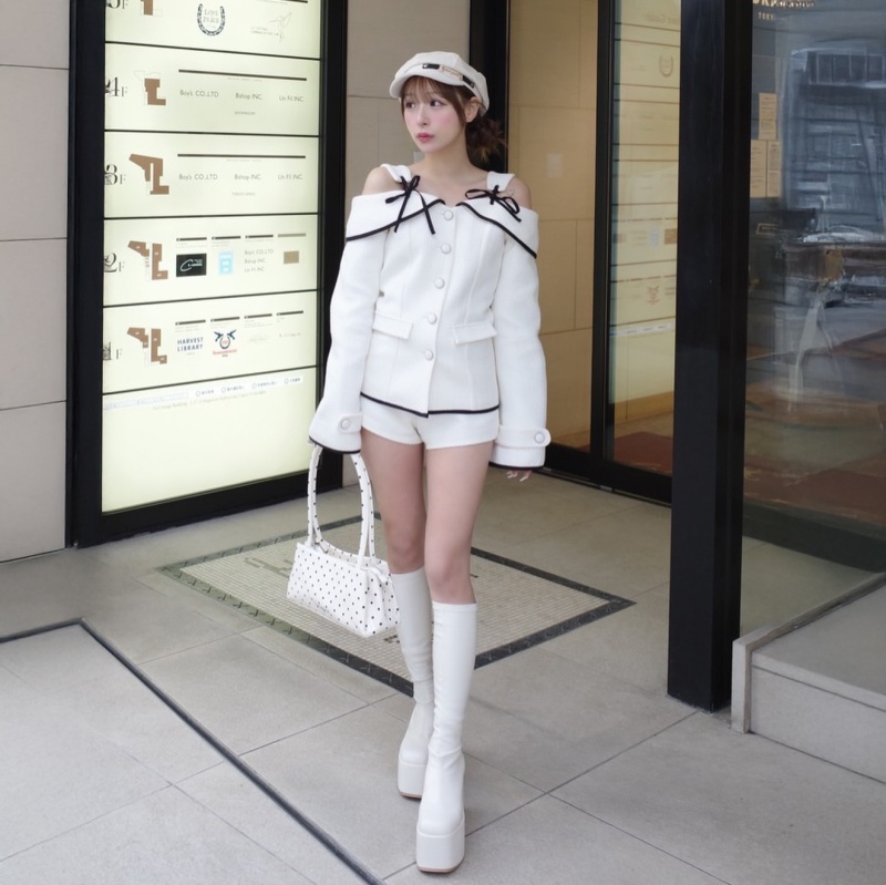 ふっくら立体感のあるツイード×オフショルデザインで、着るだけで主役級の華やかさに♡