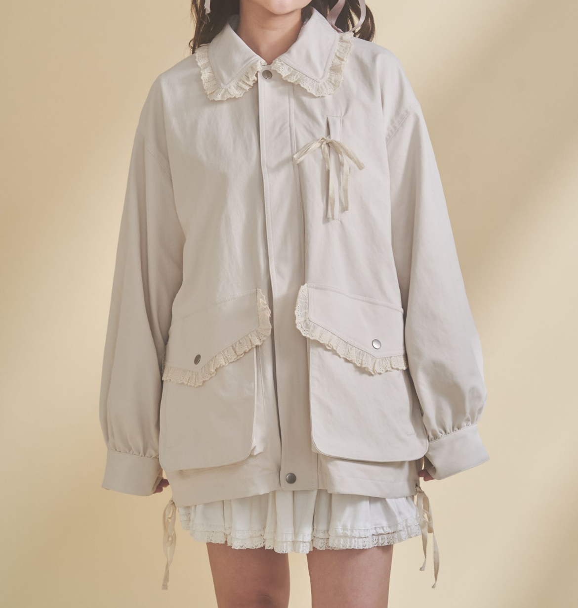 今が気分なワークブルゾンを、フリルテープや綿の綾テープでデコレーション。
