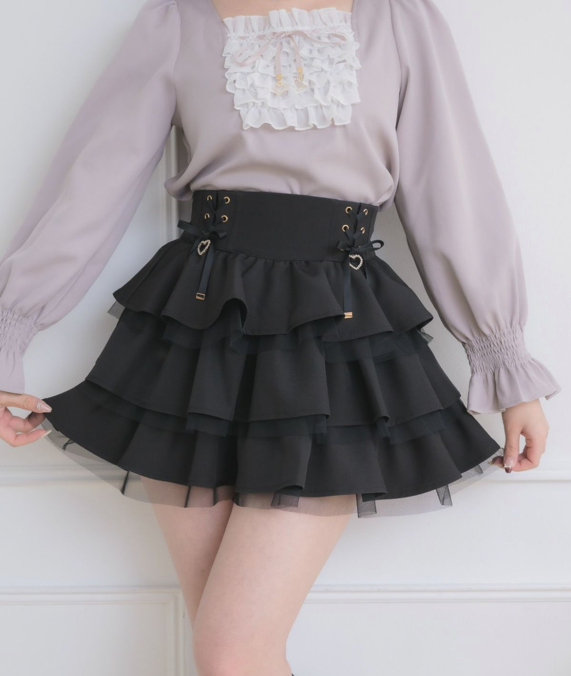 衣装のような圧倒的な存在感で、ロマンティックムードを演出するティアードデザイン。チュールを重ねたフリルがふんわり広がり、より甘く可愛い印象に♡ 太ももを華奢に見せるシルエットもポイントです。着回しやすいブラックとピンク、コーデのアクセントになるチェックの3色展開♪