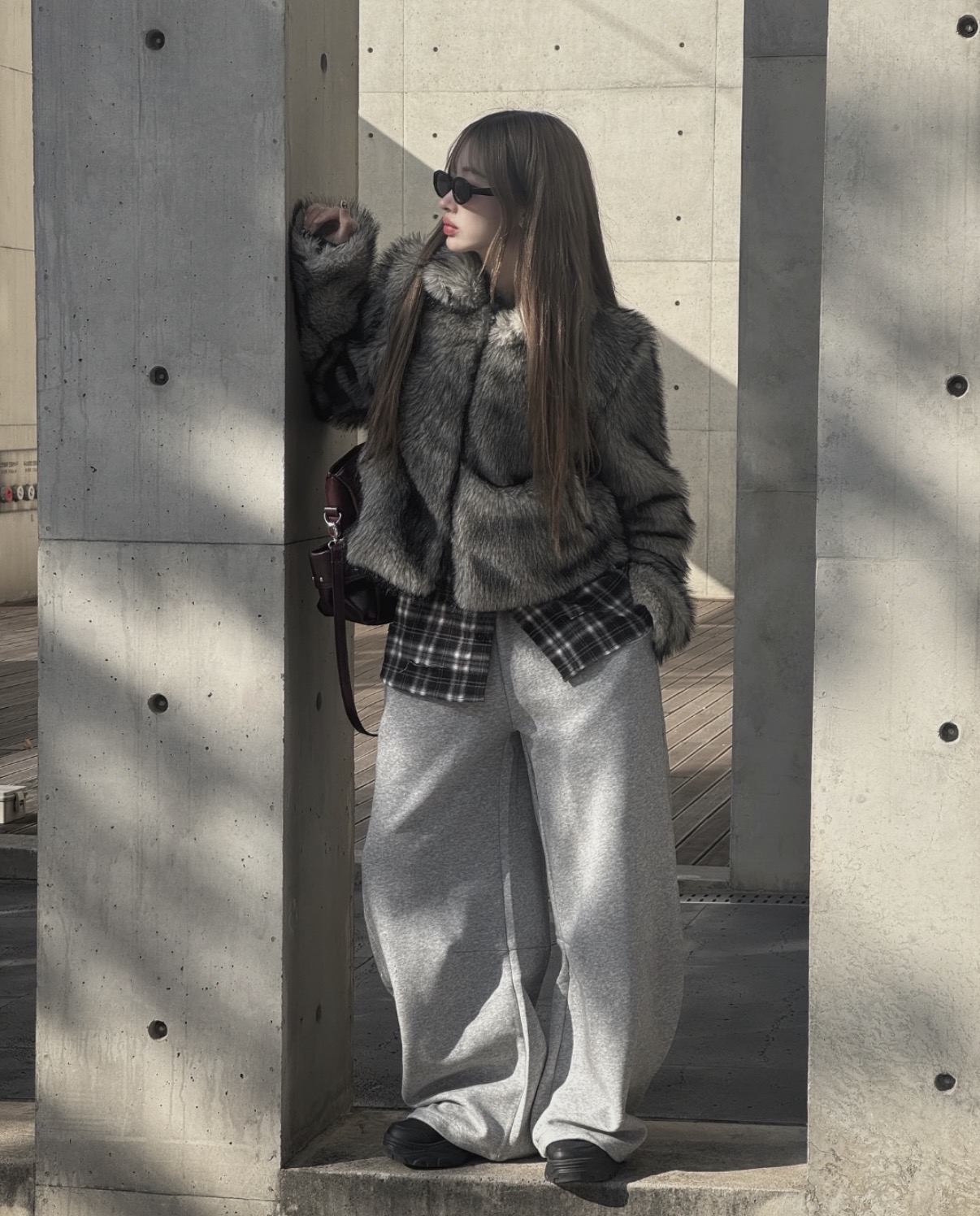 Gray fur short jacket