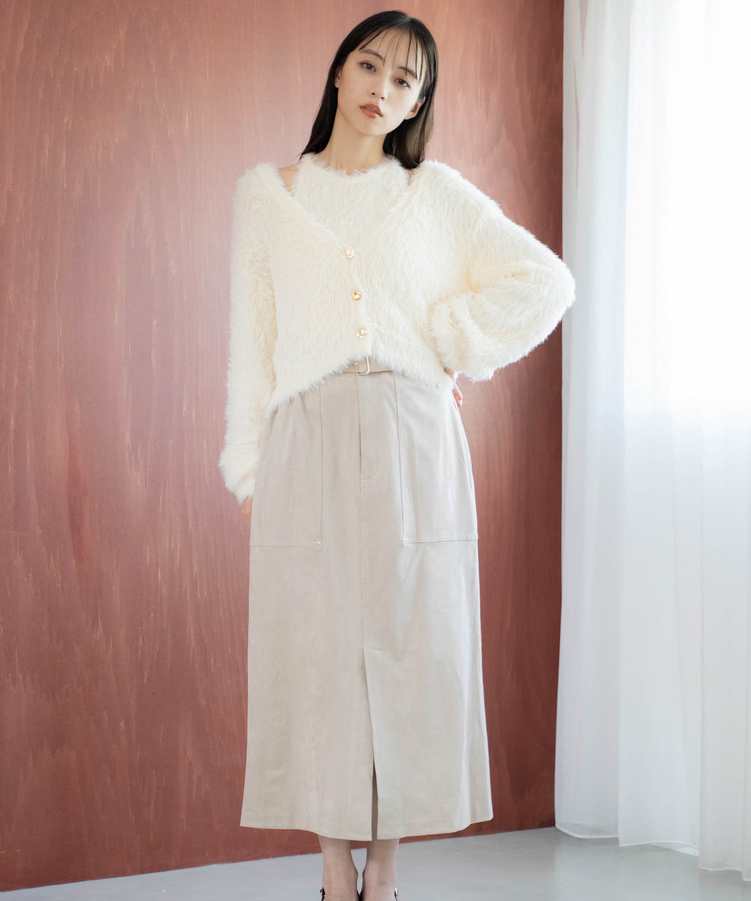 ポケットとステッチでさりげなくワークテイストを取り入れたタイトスカート。