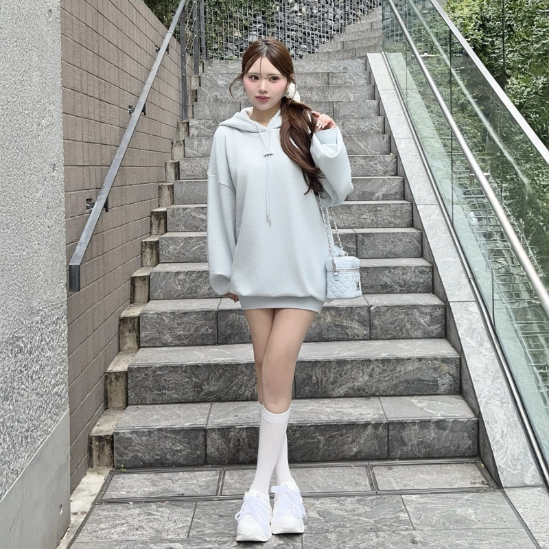 煌めくラメを散りばめたオーバーサイズシルエットで、リラックス感と可愛さを両立したフーディーミニワンピ♡
