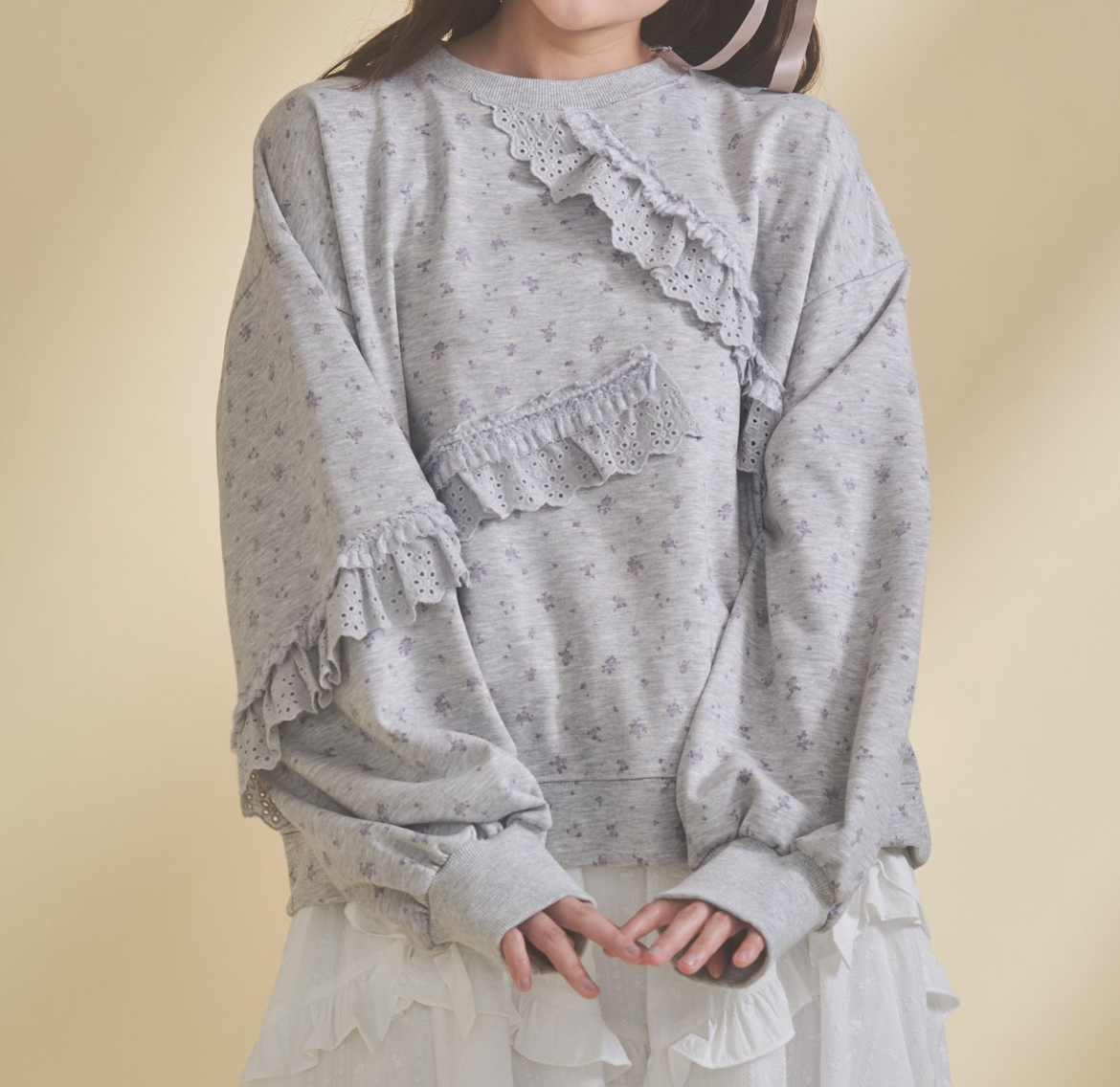 花柄×レースで甘さたっぷり。ゆるっと着られる主役スウェット。