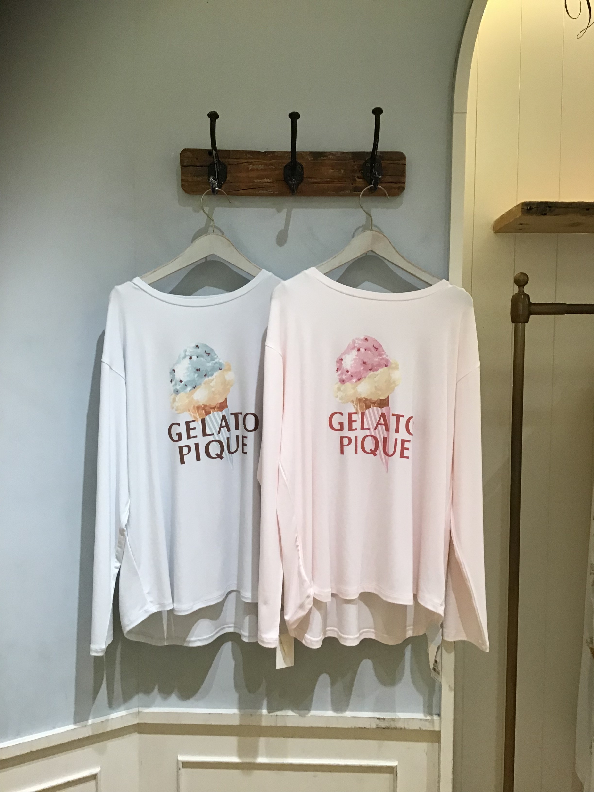 寒さが続くこの時期にうれしい、やや厚みのある柔らかいレーヨンを使用したロングTシャツ🍃フロントには大きなロゴとスリーブ付きのコーンアイスをプリントして、キャッチーな存在感に仕上げました。色はストロベリーフレーバーのピンクと、チョコミントフレーバーのミントの2色展開🍓