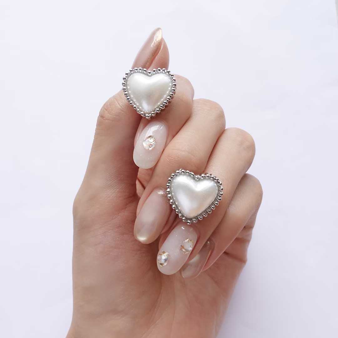 立体的なハートパールに、繊細な縁取りを施したデザインです♡