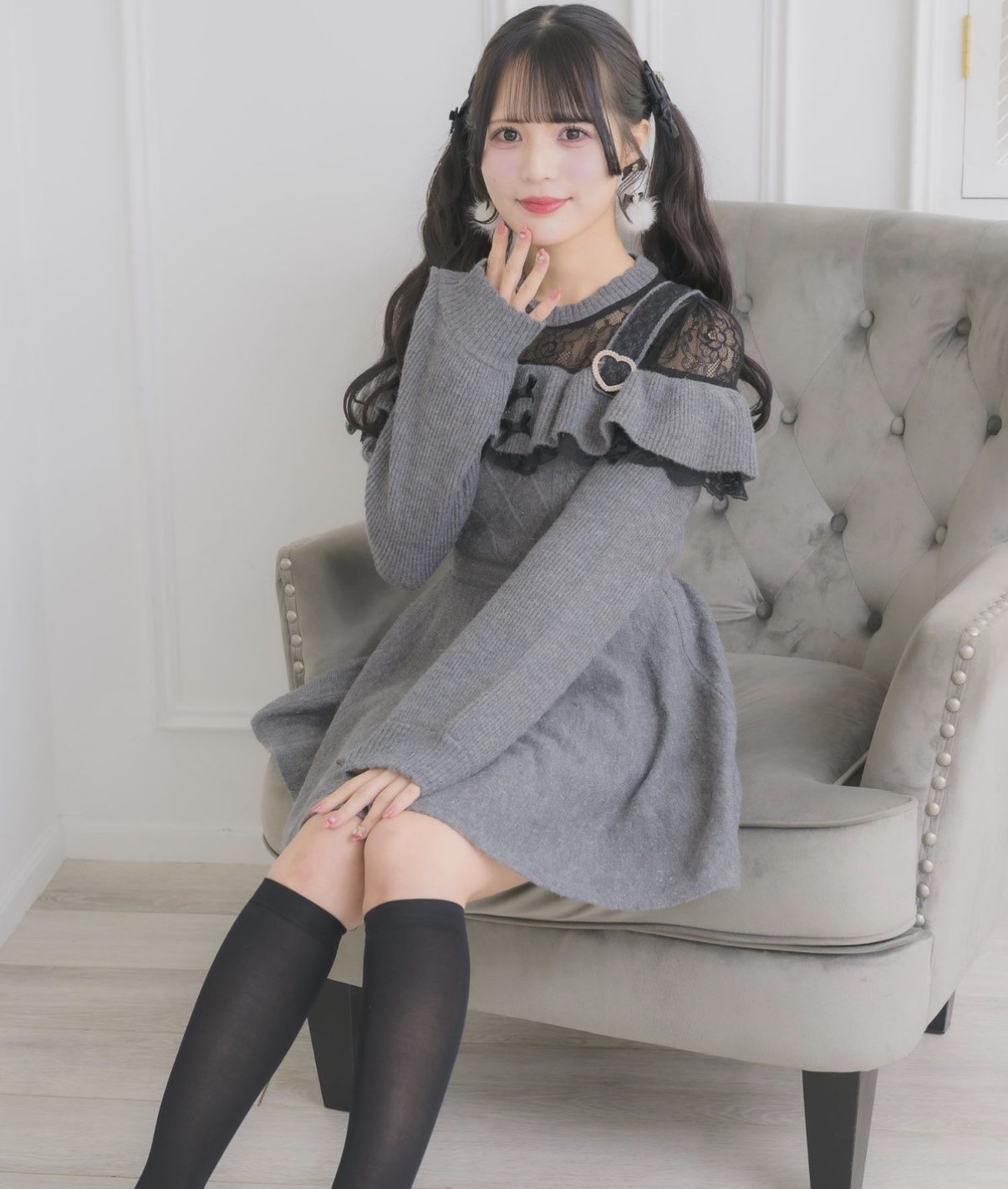 オフショル風のデザインに、レースをあしらった肩紐が周りとの差をつけるニットワンピース♡上品なラメ感で華やかさを演出。ケーブル編みが冬らしいムードを高めてくれます。ペチコート付きでふんわり感もキープできる、女の子らしさ満点の一枚♪
