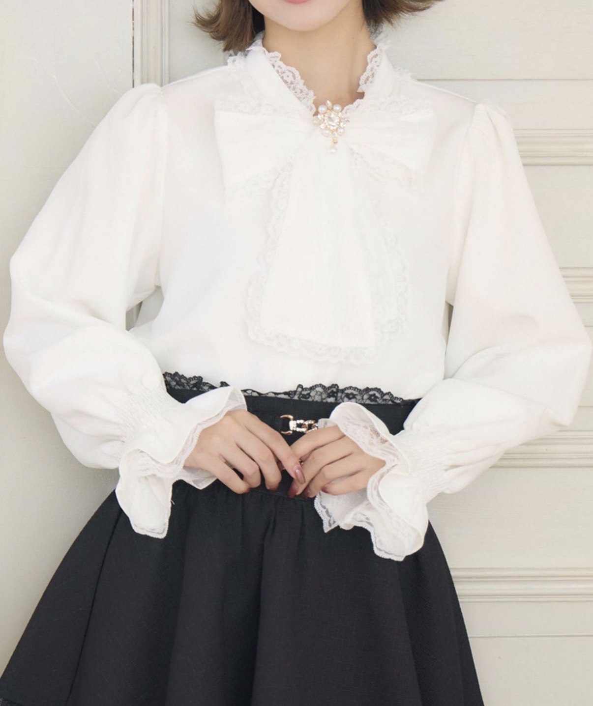 レイヤードコーデに活躍するマストアイテム!シンプルなワンカラーでベーシックなブラック・ホワイトの2色にウィンターカラーのボルドーを追加。コーデのカラーバランスも取りやすく、トレンドレスに着用いただけます。ボウタイリボンが可愛いので、デコルテに開きのあるジャンスカやコートとの相性抜群♡