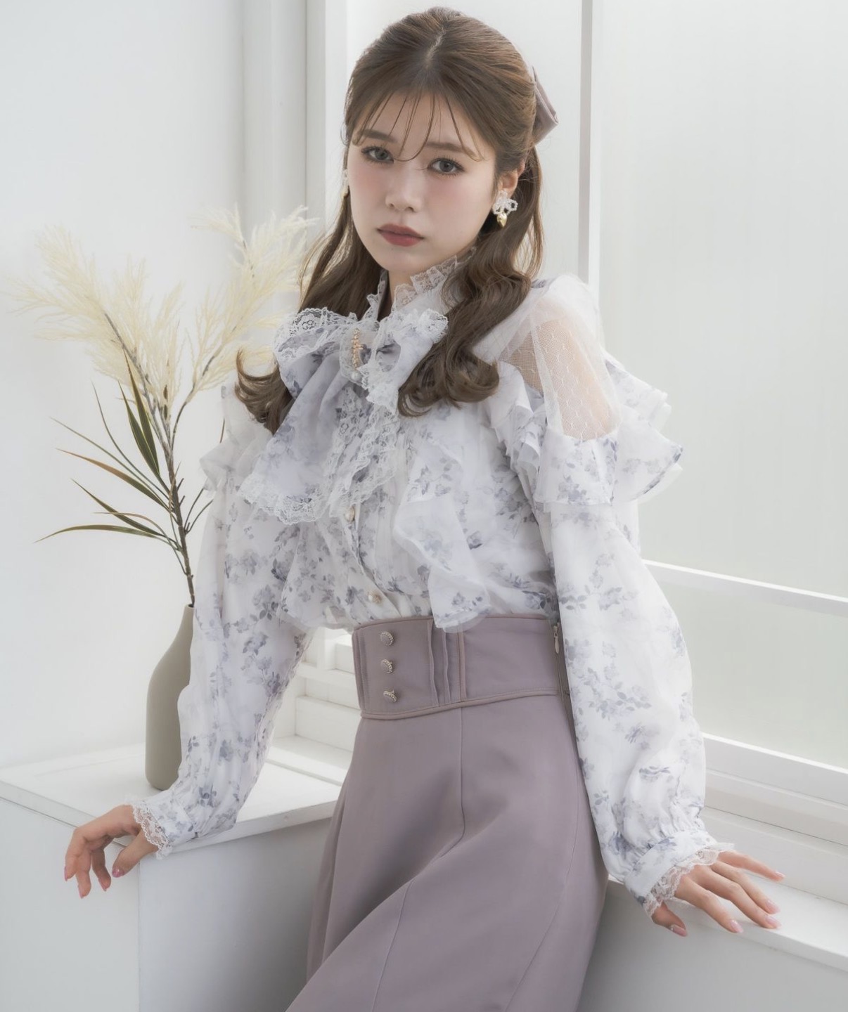 人気商品が長袖ver.になって再登場♡旬顔をメイクする"花柄" or トレンドレスな"無地"の2択で選べるラッフルブラウス。迷ったらどっちもマストバイがおすすめです♪レディライクなシアーの透け感が上品可愛く、華やかさを添えてくれます。