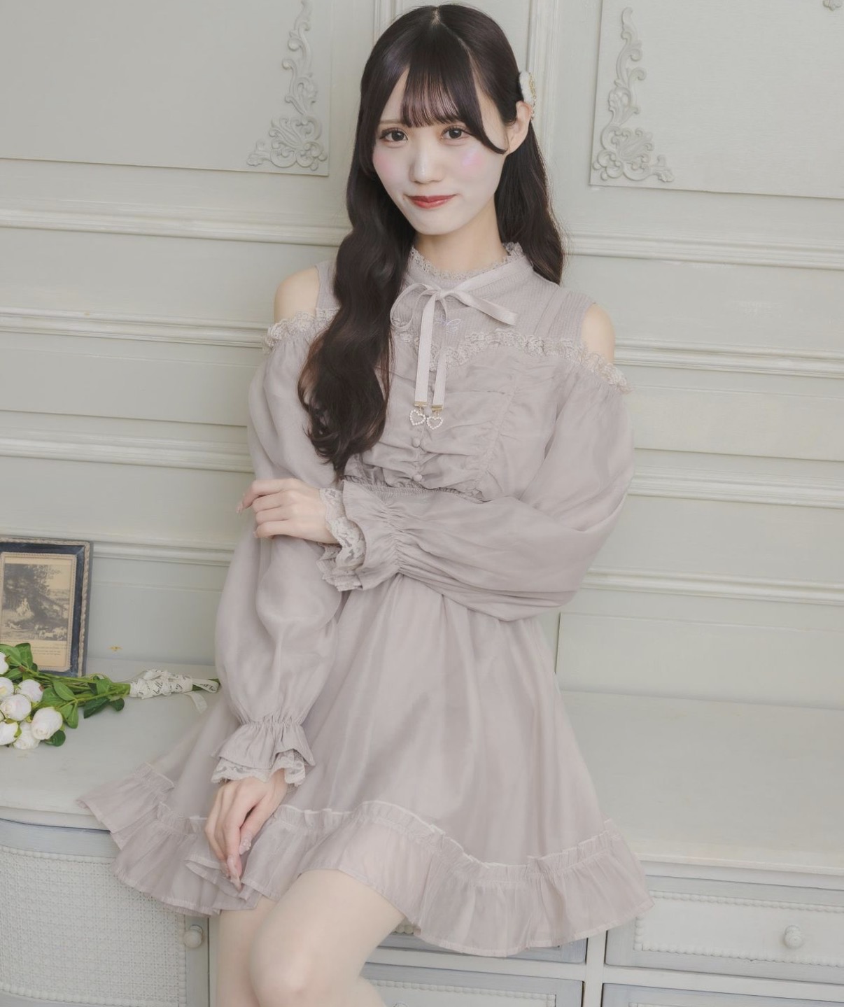 人気の半袖タイプに加えて、待望の長袖バージョンがReturn♡ときめきを誘う洗練シルエットとエアリーなニュアンスで、乙女心をくすぐるロマンティックなワンピース。控えめなオフショルが、さりげない抜け感をプラスします。