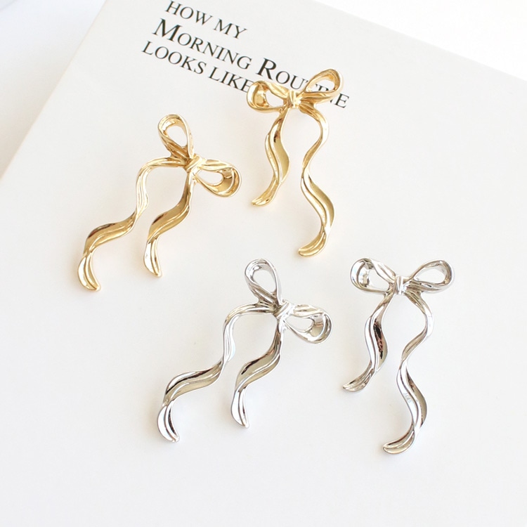 メタル素材の大きくて可愛いデザインリボンの形のピアスです♡