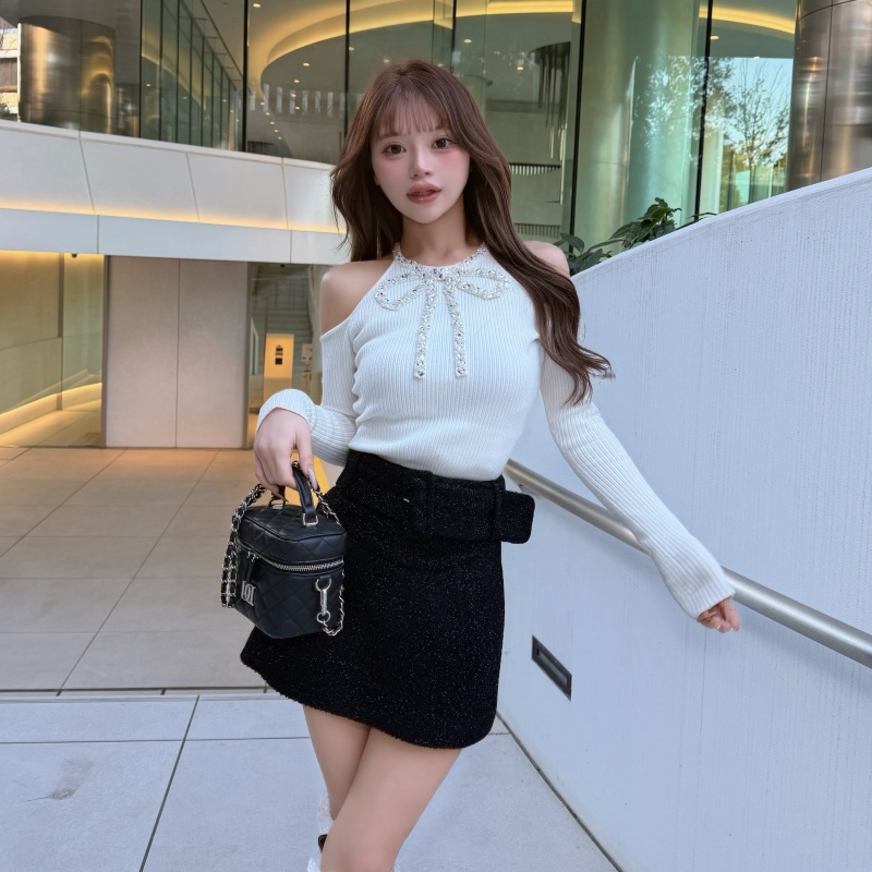 繊細にきらめくビジューリボンが目を惹く、春コーデの主役級リブトップス🎀✨