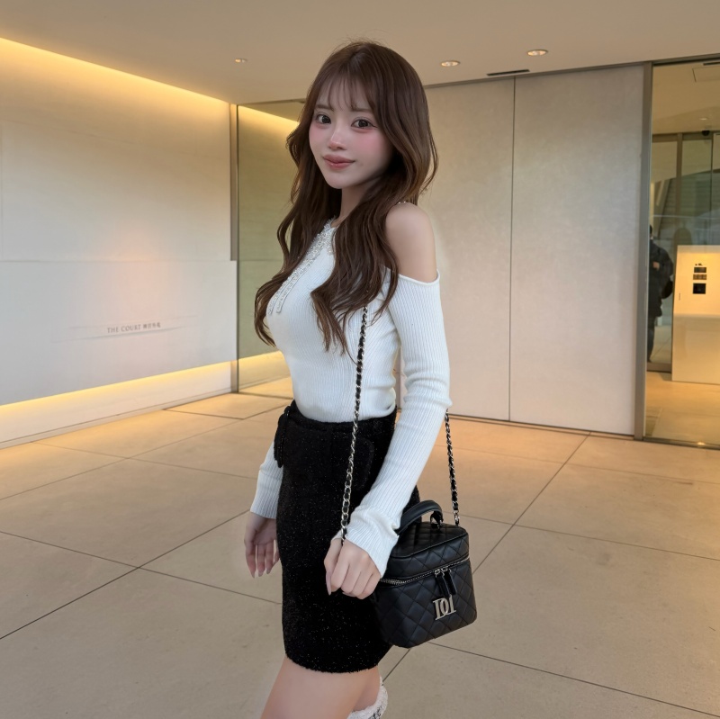 肩のカッティングが抜け感をプラスし、可愛さと上品さを両立した一枚です🌸