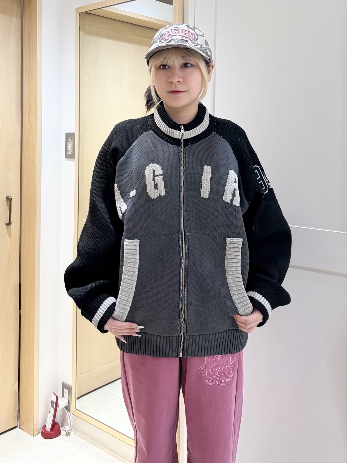 フロントのX-girlロゴは、ふんわり優しいモール糸でジャガード。