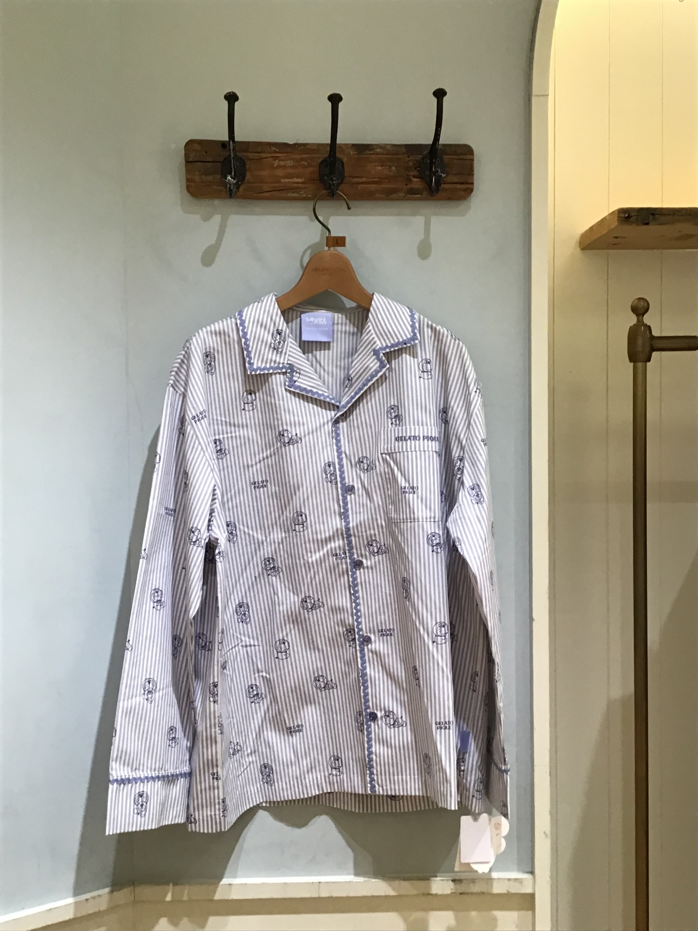 色んな表情のドラえもんを、gelato piqueらしい柄に落とし込んだメンズサイズの布帛シャツです。ドラえもんはストライプ柄にキャッチーな波テープをあしらったデザインに💙胸ポケットのロゴ刺繍や、色を効かせたピスネームもさりげないポイントです。お揃いのロングパンツや同シリーズのカーディガンと合わせたり、 レディースとのペア・コーディネートもお楽しみいただけます👧🏻👦🏻✨