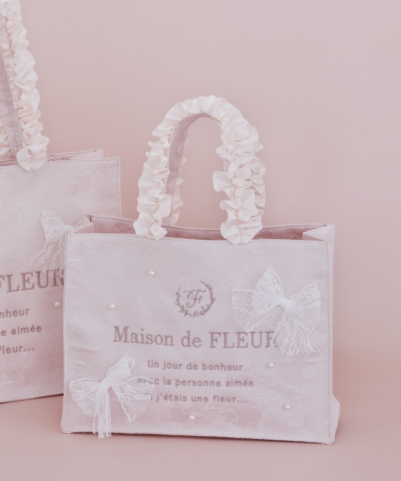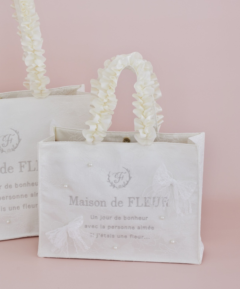 ♦品名:レースリボンフリルハンドルスクエアトートMバッグ