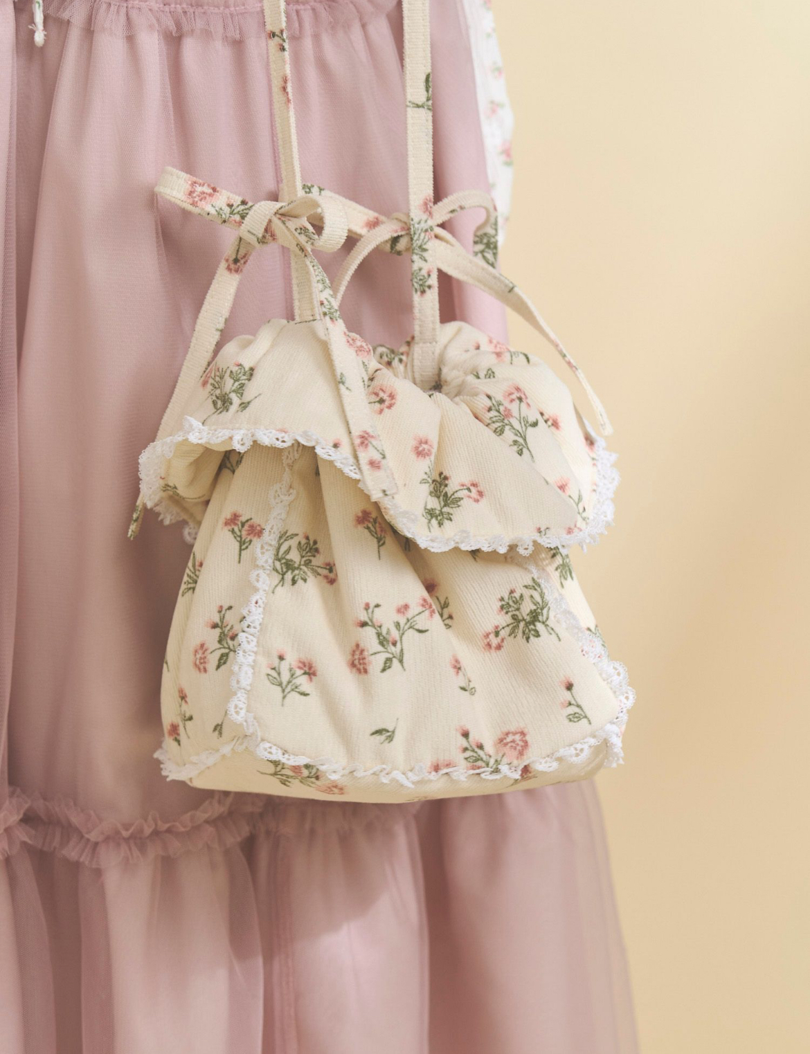 春の風を感じる小花柄のスクエアポシェット。