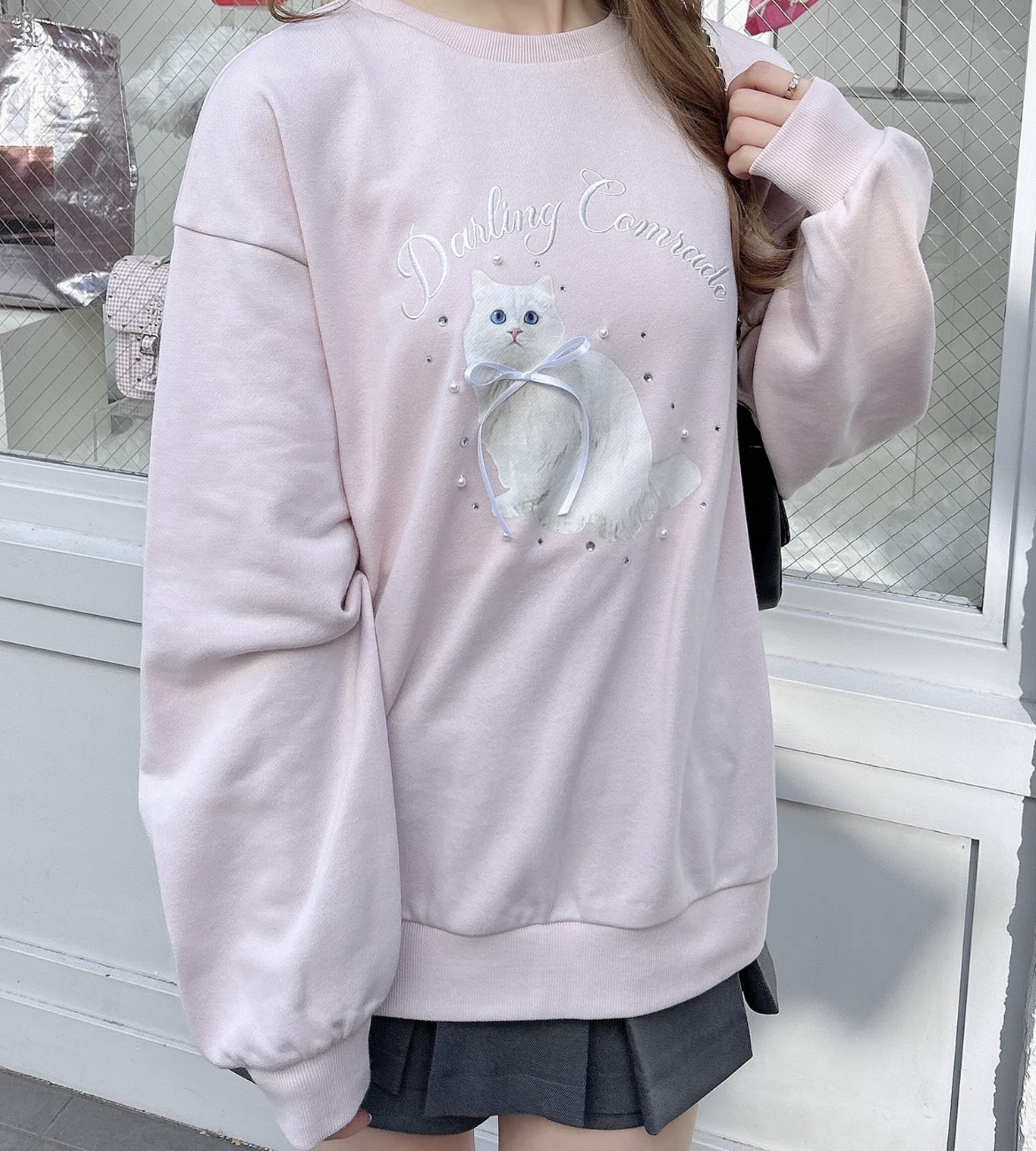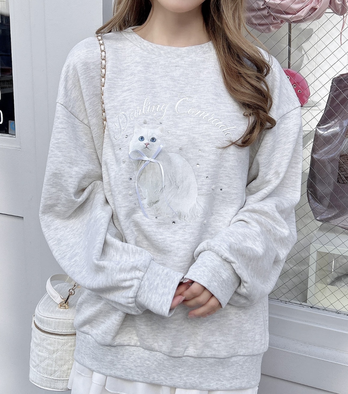 装飾リボン付ねこ裏毛TOPs入荷しております🐱