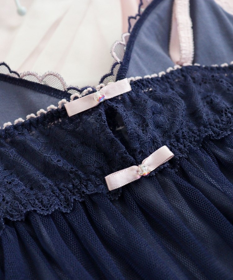 カップがついたタイプのスリップなので、ブラジャーを着けずにこれ1枚でご着用いただけます。身生地はチュール素材を使用しており、さらりとした気持ちの良い着心地です。