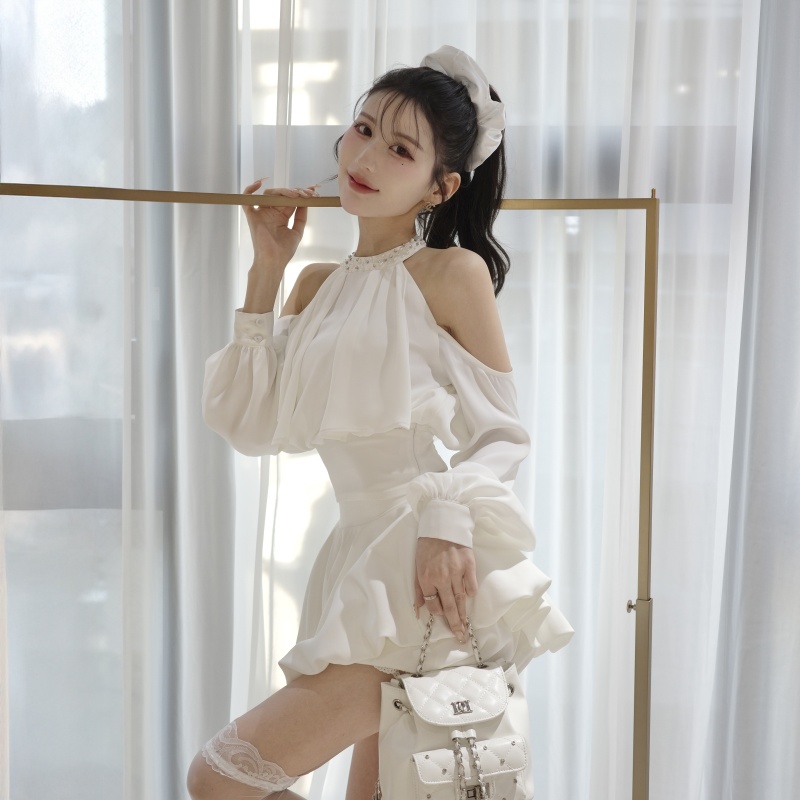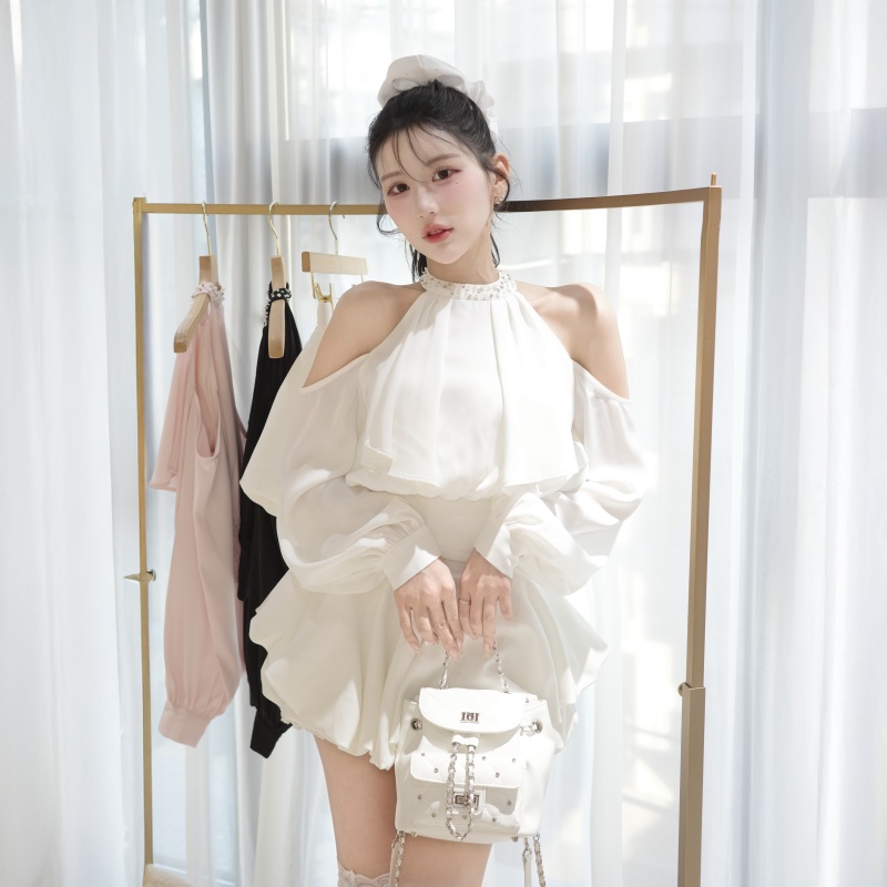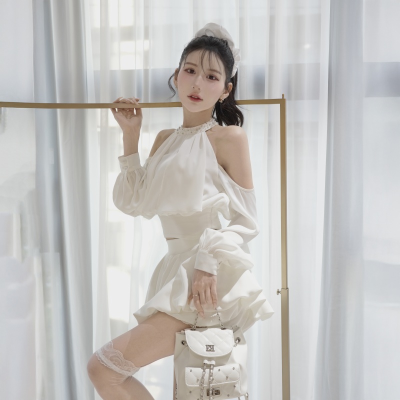アメスリラインで肩まわりをすっきり見せ、華奢見えと上品さを同時に叶えます♡