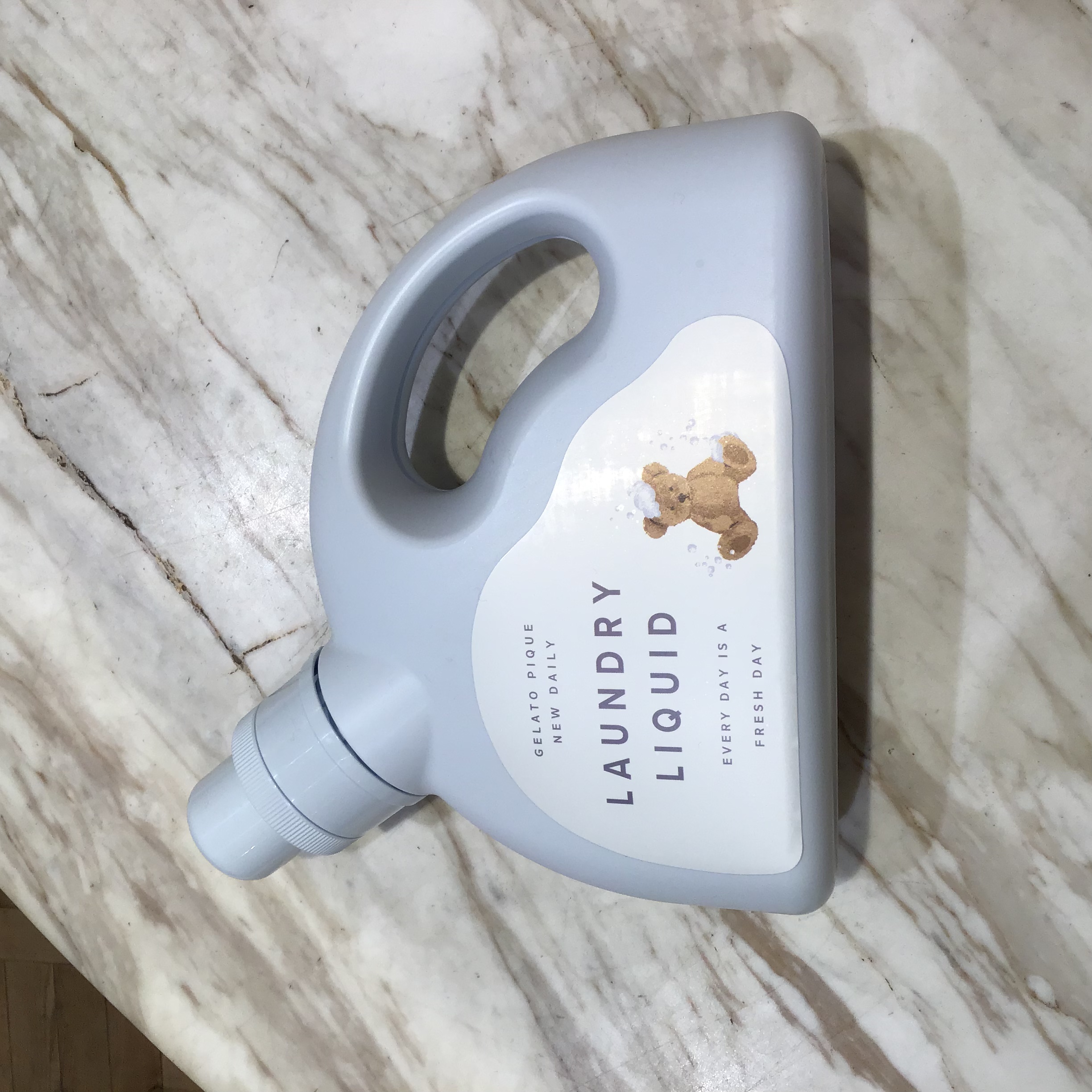 天然由来の洗浄成分により環境にも優しく、お子様の服にも安心して使える洗剤です。半月型のボトルで注ぎやすく、かわいいクマがプリントされたパッケージで、毎日のお洗濯が楽しくなりそう。
