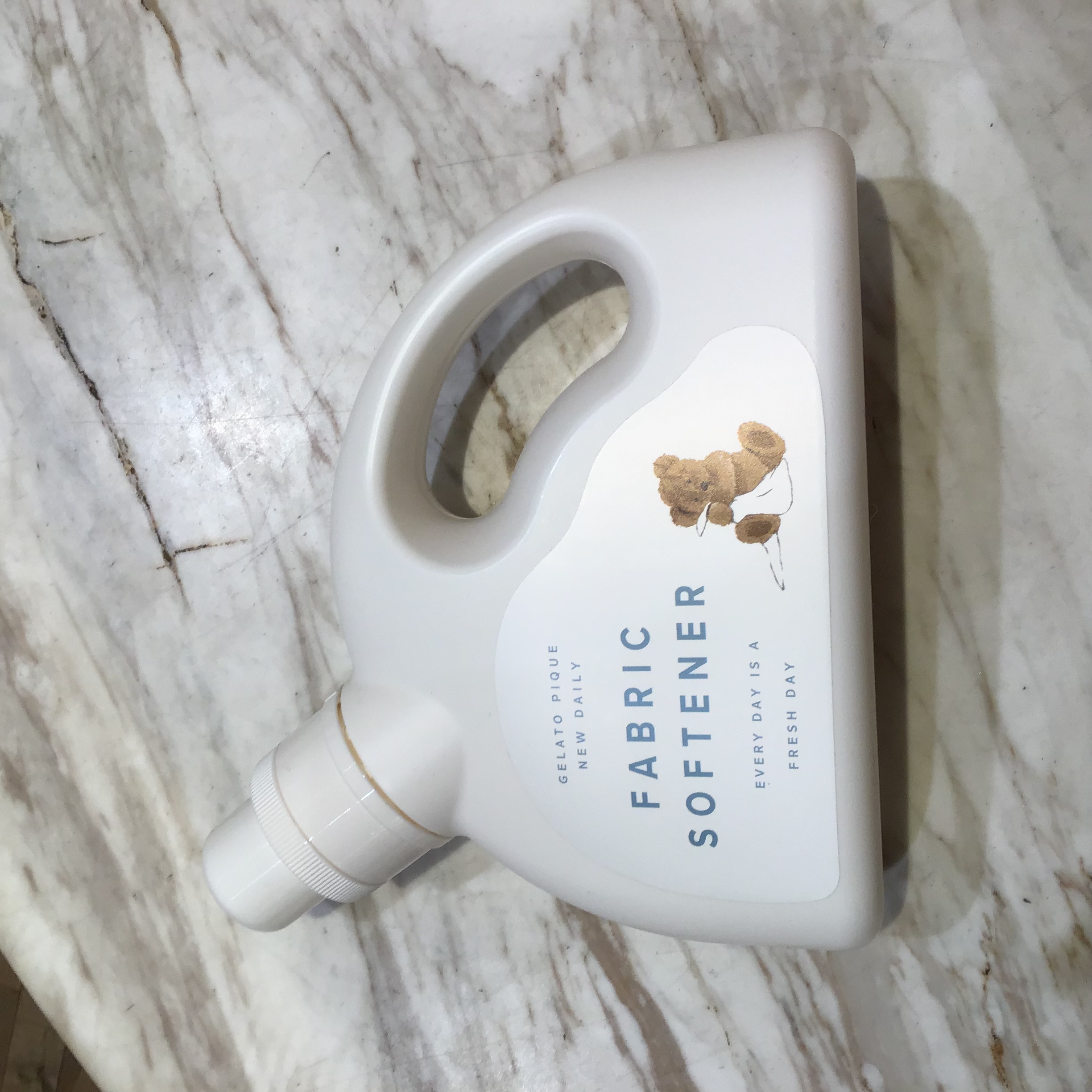 植物由来の界面活性剤を使用しているので、お子様の服にも安心して使える柔軟剤です。半月型のボトルで注ぎやすく、かわいいクマがプリントされたパッケージで、毎日のお洗濯が楽しくなりそう。ジェラートピケのモコモコウェアをふかふかに保つのにおすすめのアイテムです。 香り:ピーチフローラルの香り