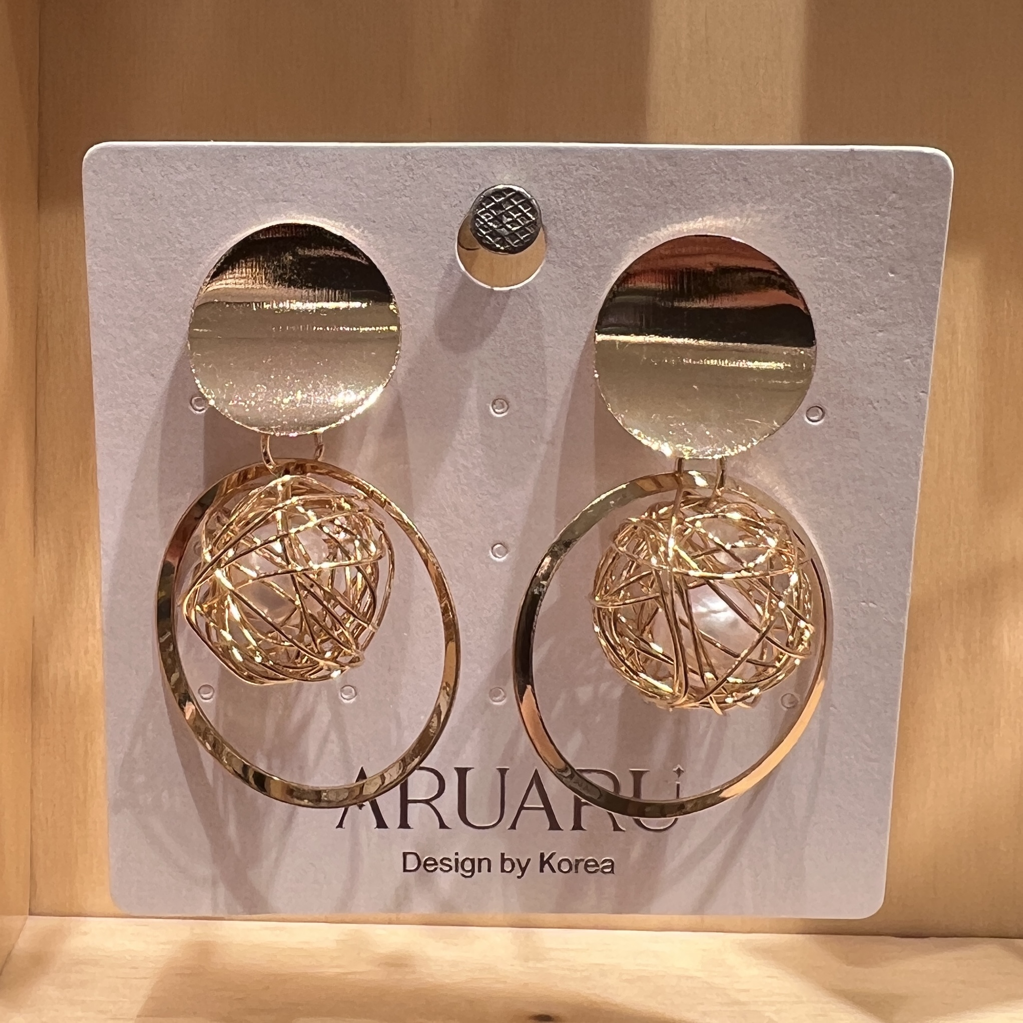 中央のワイヤーボールが揺れるたびに光を反射し、耳元を華やかに演出します♪