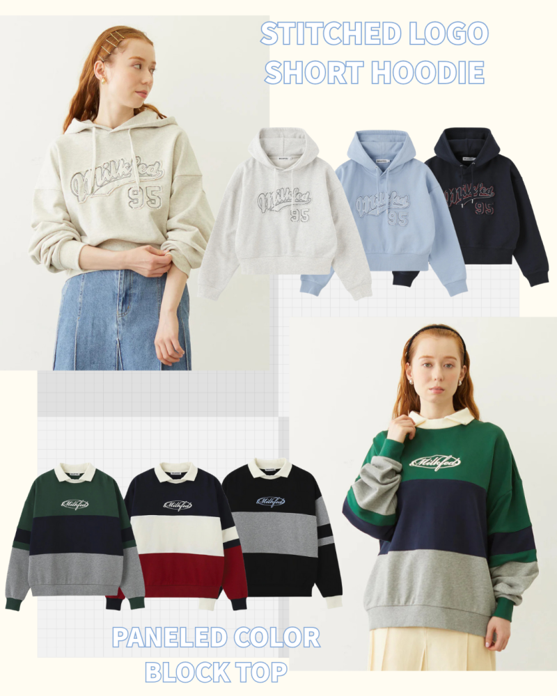 価格:MILKFED. HEART RIBBON EMBLEM SHORT CREW SWEAT — ¥8,800(税込)MILKFED. PARFAIT LOGO B/B TEE — ¥6,600(税込)