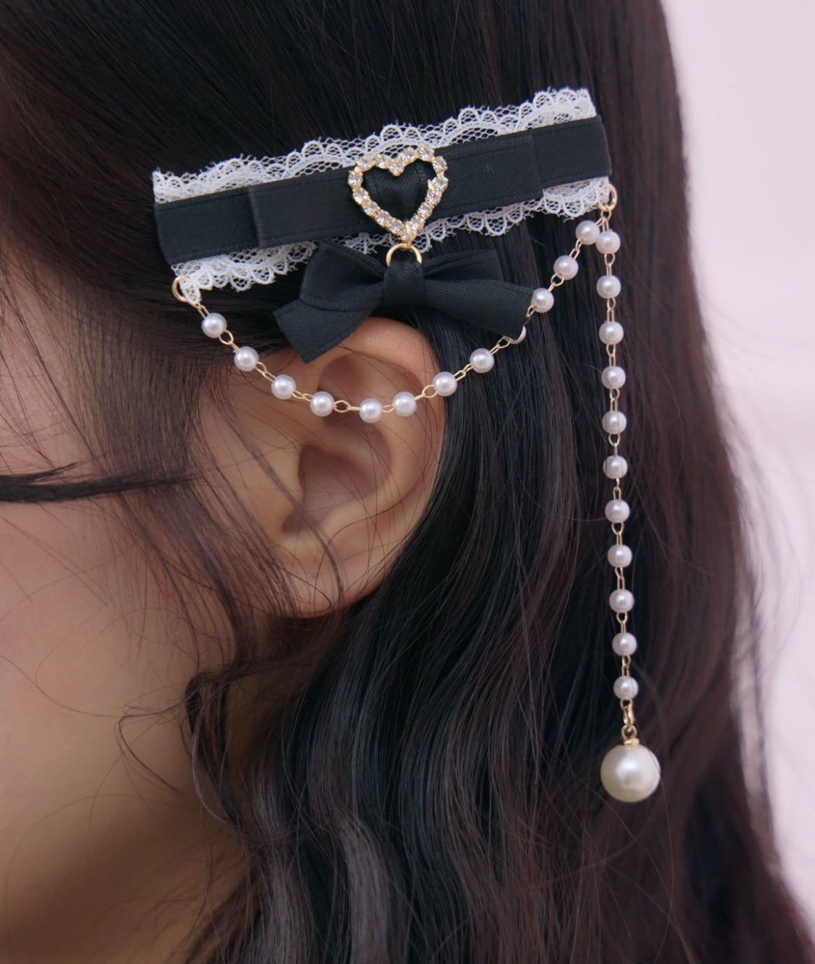 特別感のあるパールチェーンをあしらった、存在感抜群のリボンクリップセット。垂れ下がるチェーンが動くたびにゆらゆらと揺れ、視線を惹きつけます。リュクスな印象の中にROJITAらしい甘さと個性をプラスし、ヘアスタイルを華やかにアップデート。