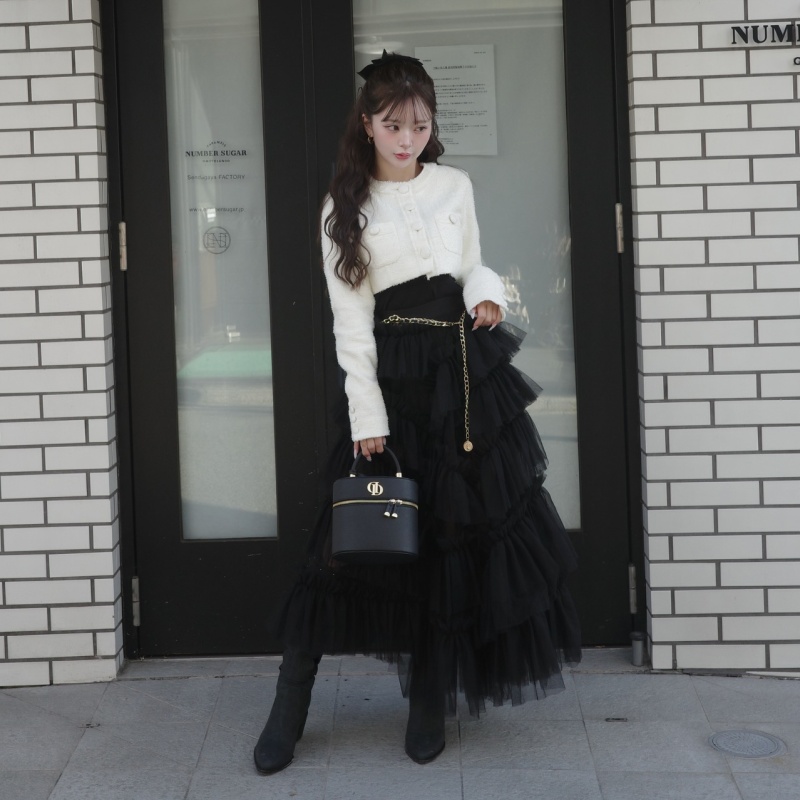 さりげなく煌めくラメツイードが、きちんと感の中に上品な華やかさをプラス✨