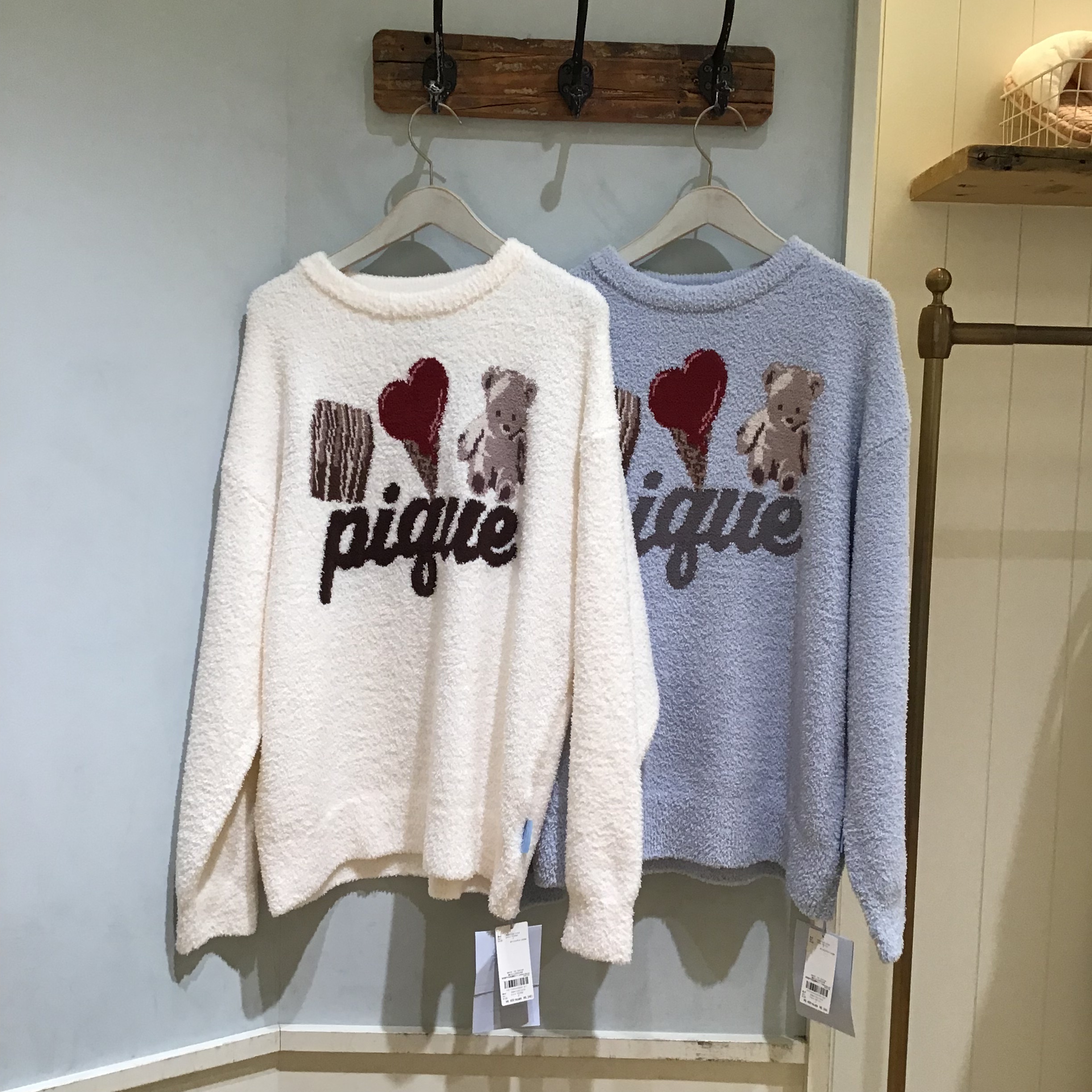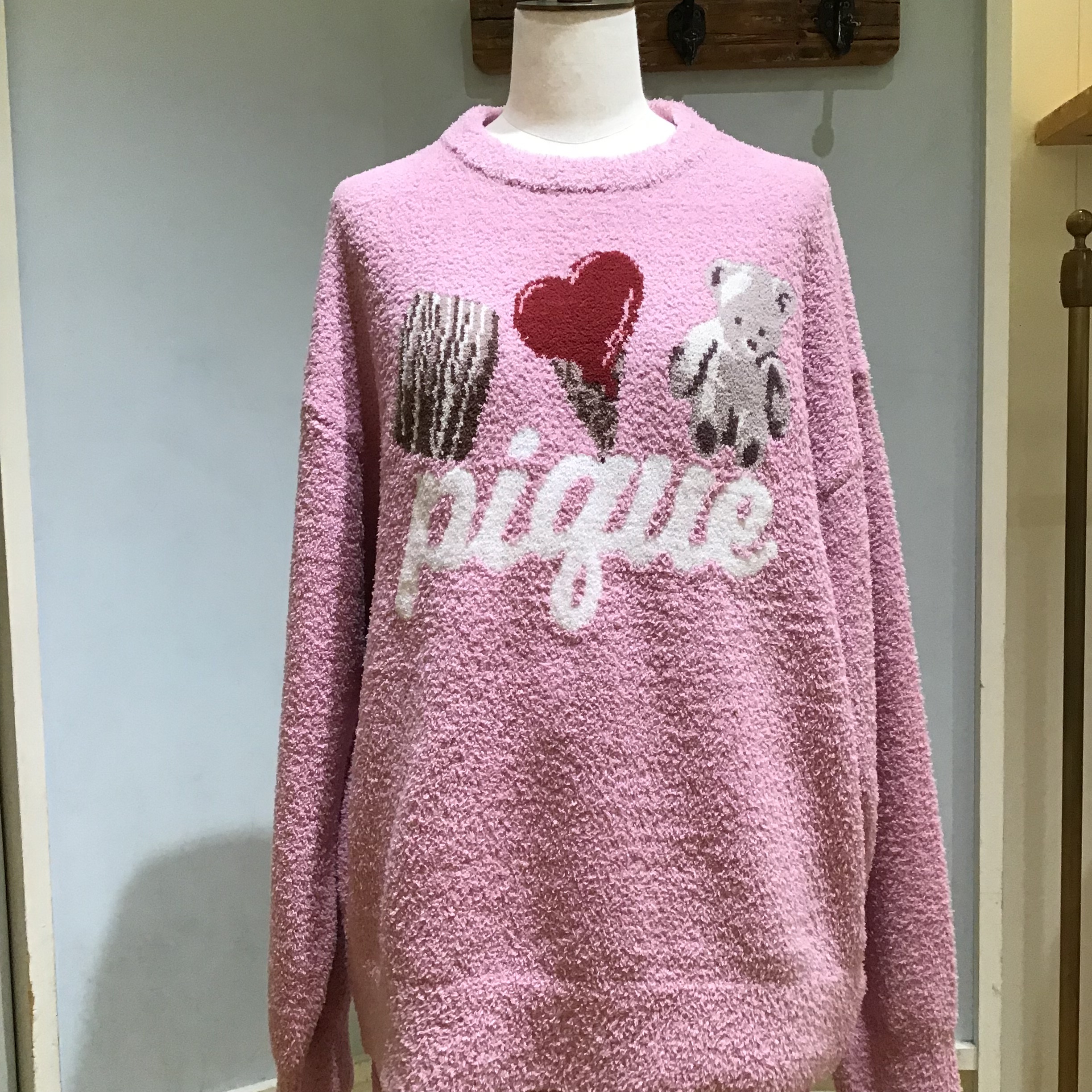 アイスやベアなど、gelato piqueらしいスウィートなモチーフに包み込まれる2026年のバレンタインコレクション。ベアやチョコレート、ハートアイスのジャガードをPOPにあしらったプルオーバーです。