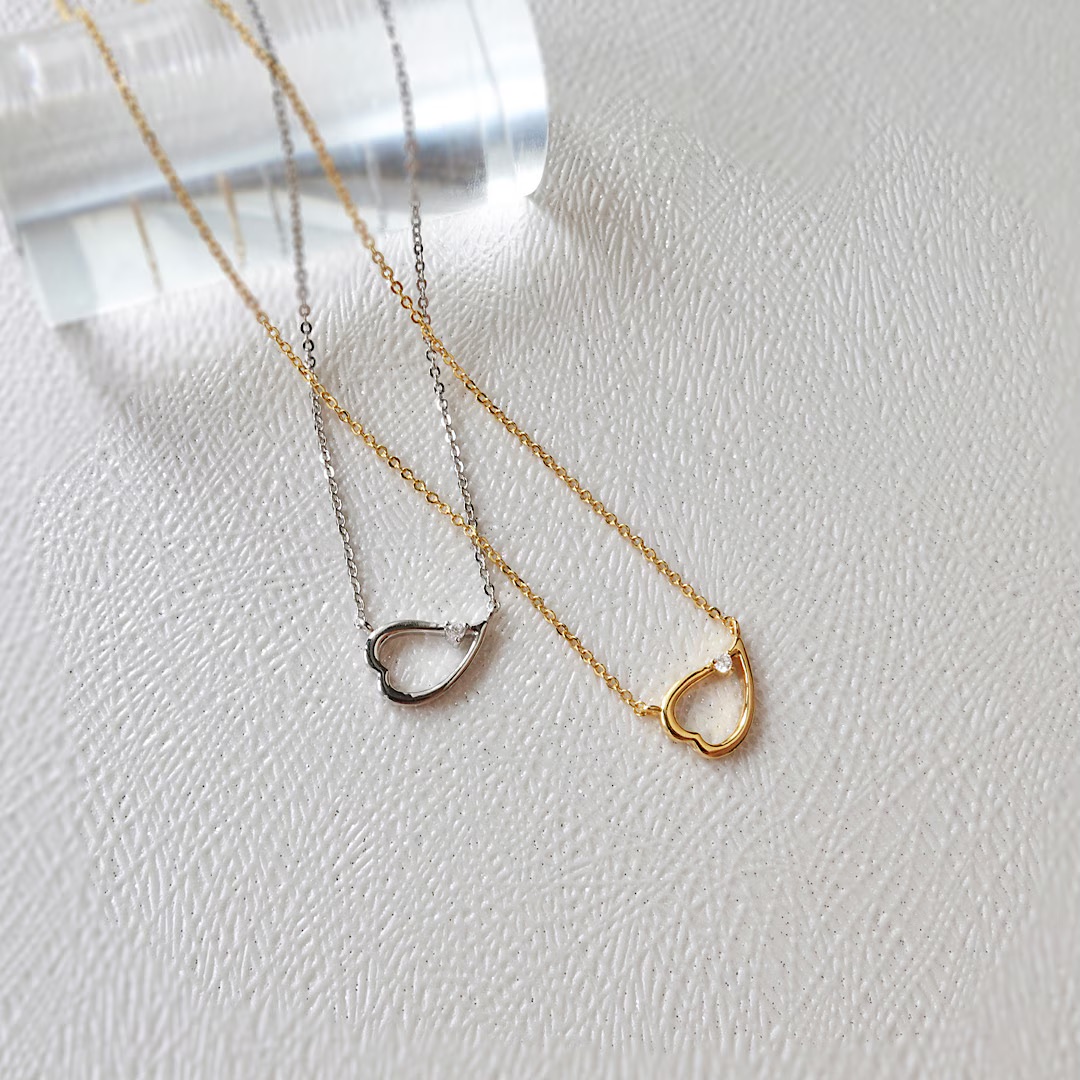 上品なシルエットのハートデザインで、さりげなく女性らしさを引き立てます。 チャームを合わせてお好きなデザインもお楽しみいただけます。