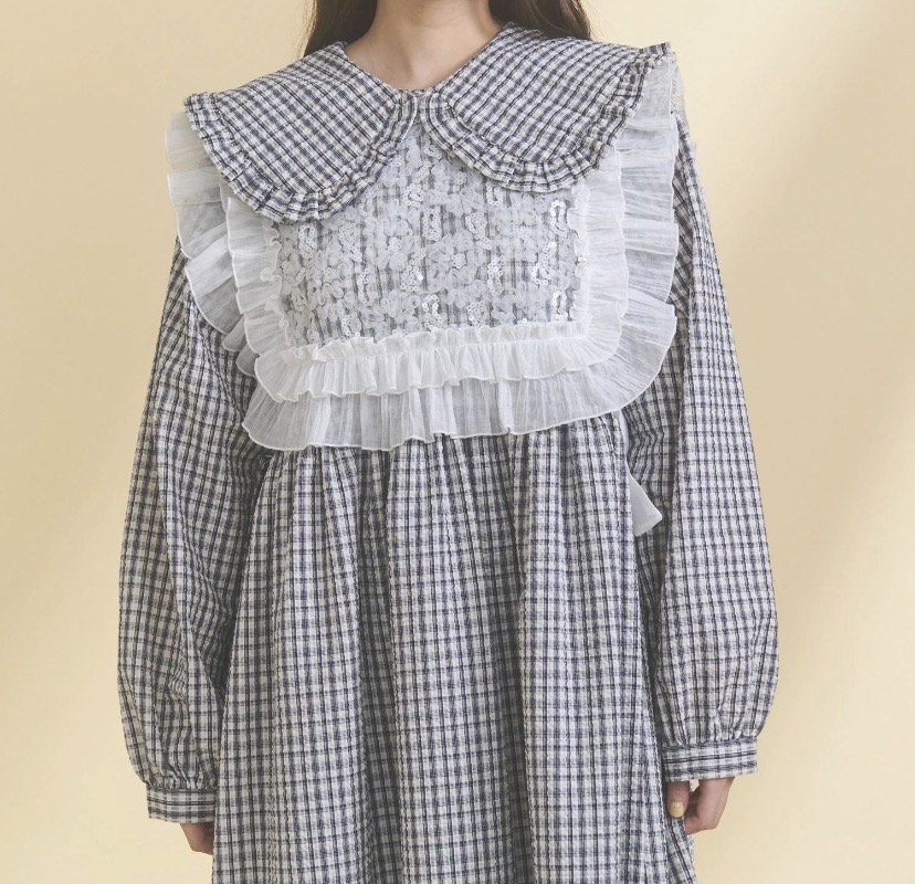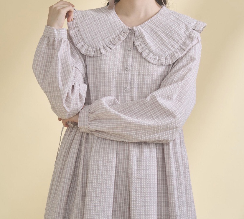 軽やかな春チェックで仕立てた、フリル襟のワンピース。