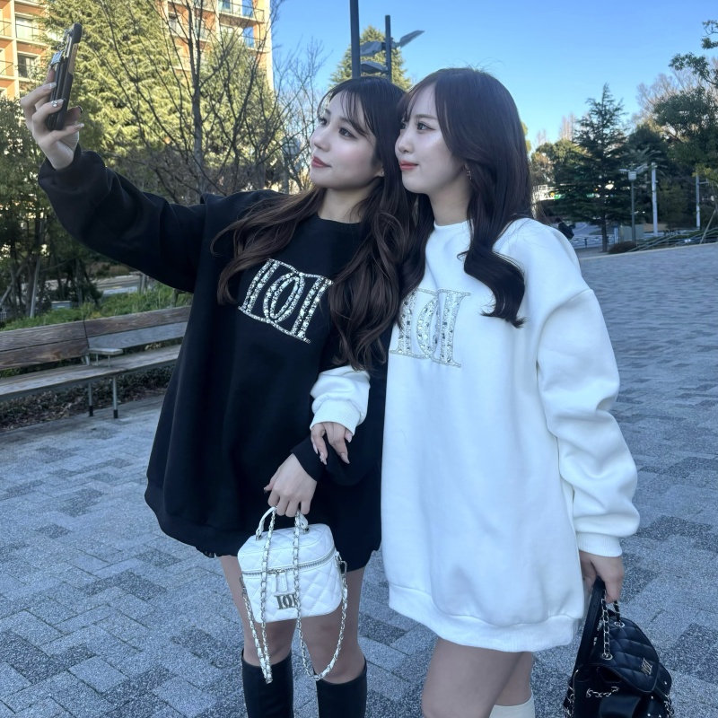 きらめくビジューで描いたDDロゴが目を惹く、アップデートされた大人気スウェット💎