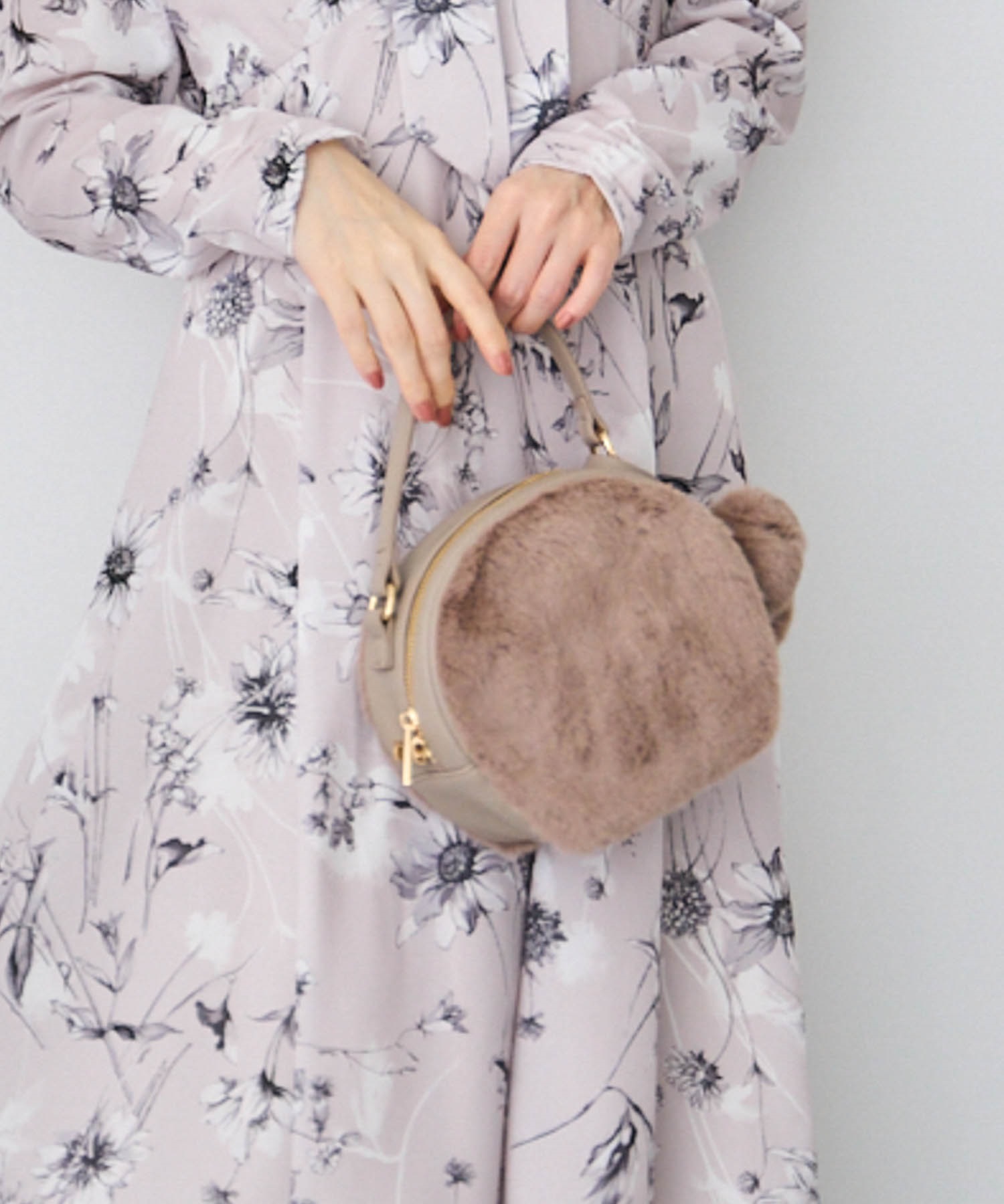 ファーバッグには取り外し可能なポンポンチャームがアクセントに。