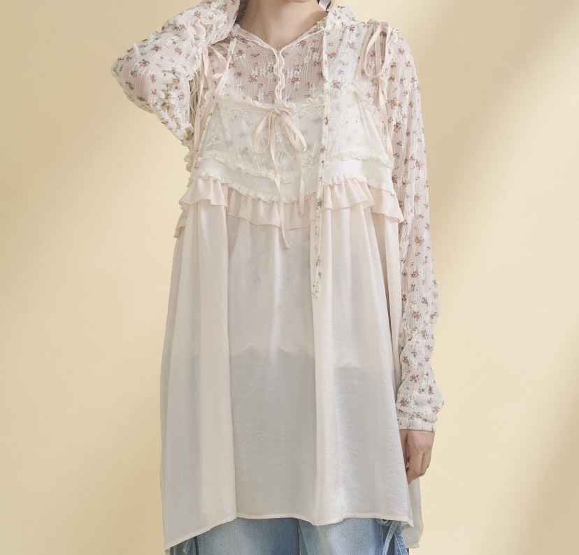 甘すぎないレース柄に落とし込んでいるので様々な着方を楽しめる一着です。